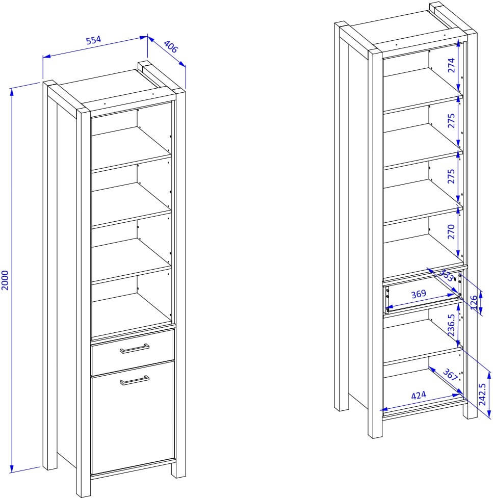 – 2 συρτάρια με 1 εσωτερικό ράφι
