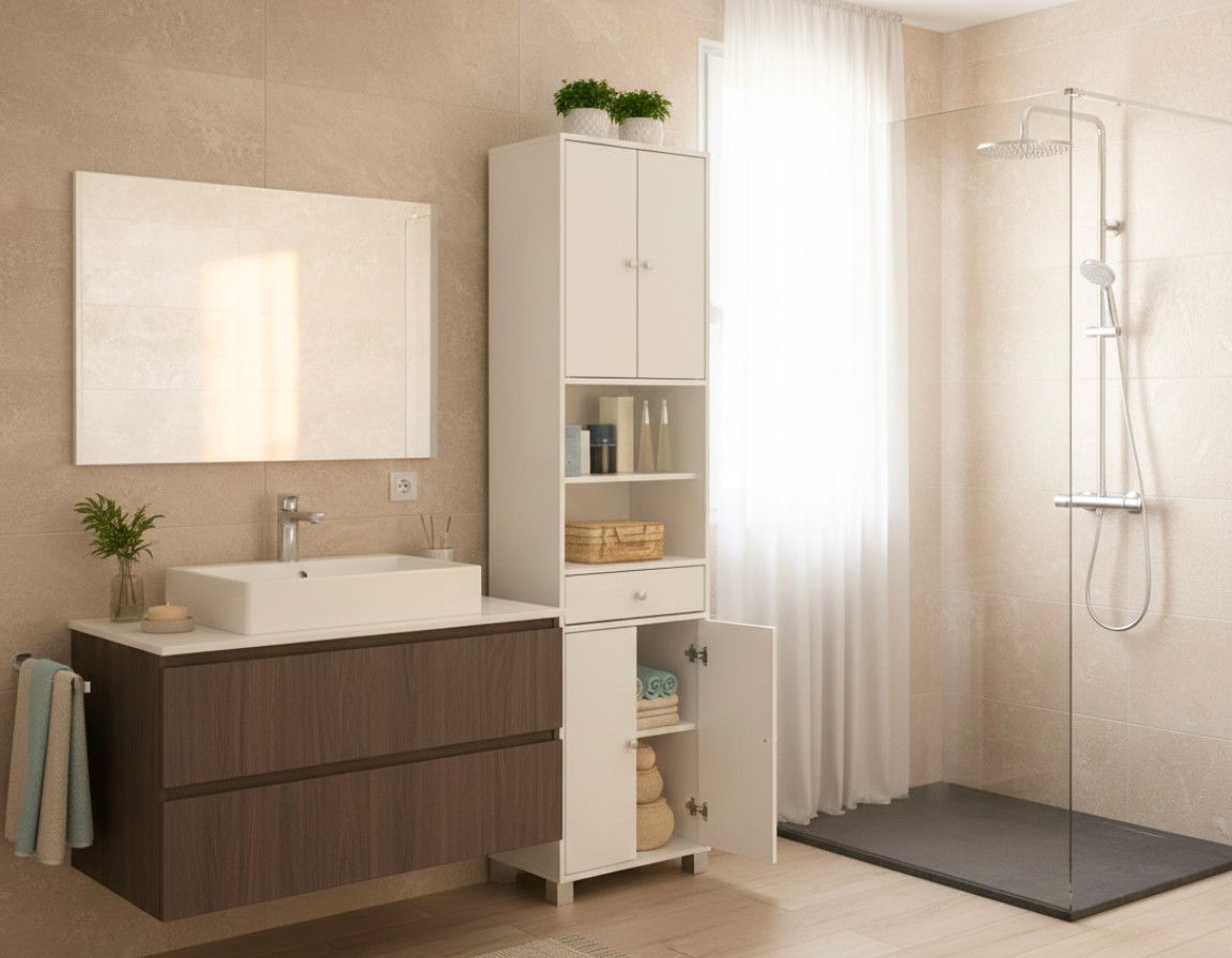 Η στήλη μπάνιου Alexia 43 αποτελεί ένα πρακτικό έπιπλο το οποίο σας επιτρέπει να αποθηκεύσετε και να οργανώσετε όλα όσα χρειάζεστε μέσα στο μπάνιο του σπιτιού σας.