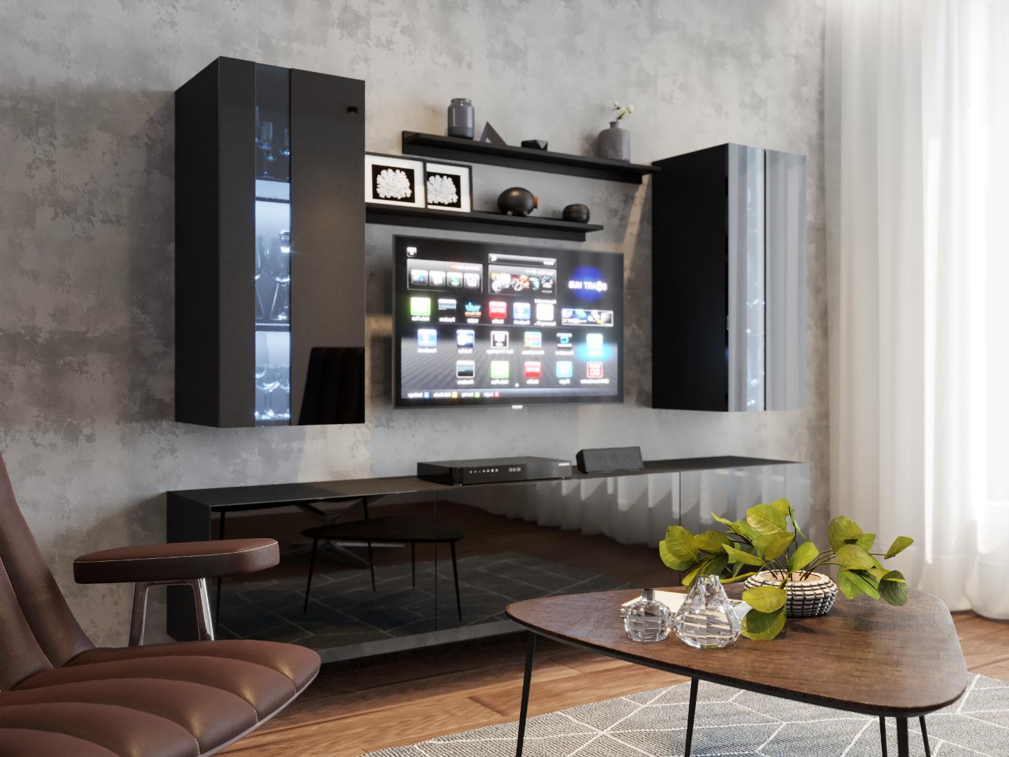 Σύνθεση σαλονιού Bacos, μία επιλογή για το σαλόνι σας η οποία θα το ενισχύσει αισθητικά, ενώ παράλληλα θα δημιουργήσει αρκετούς χώρους για αποθήκευση συσκευών και μικρο-αντικειμένων. Οι πολλαπλές επιφάνειες της σύνθεσης σε συνδυασμό με τον λιτό σχεδιασμό της, θα σας επιτρέψουν να διακοσμήσετε το έπιπλο και γενικότερα τον χώρο σας όπως εσείς επιθυμείτε.