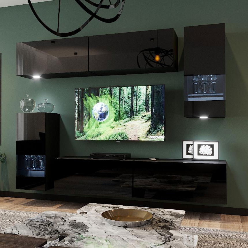 Σύνθεση σαλονιού Calvo, μία επιλογή για το σαλόνι σας η οποία θα το ενισχύσει αισθητικά, ενώ παράλληλα θα δημιουργήσει αρκετούς χώρους για αποθήκευση συσκευών και μικρο-αντικειμένων. Οι πολλαπλές επιφάνειες της σύνθεσης σε συνδυασμό με τον λιτό σχεδιασμό της, θα σας επιτρέψουν να διακοσμήσετε το έπιπλο και γενικότερα τον χώρο σας όπως εσείς επιθυμείτε.