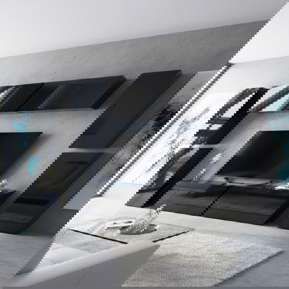 Σύνθεση σαλονιού Sarlot, σε εξαιρετικά μοντέρνο σχεδιασμό. Αποτελείται από 8 κρεμαστά ντουλάπια, τα οποία ιδανικά τοποθετούνται περιμετρικά της τηλεόρασης δημιουργώντας μια σύνθεση που κερδίζει τις εντυπώσεις.