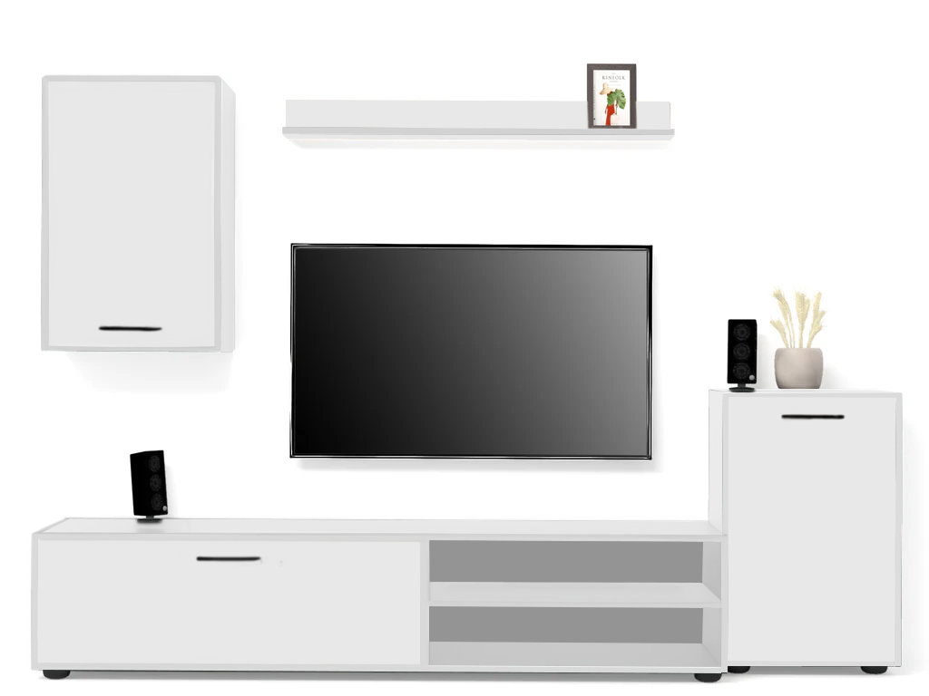– Επιδαπέδια βάση τηλερόασης με 1 ντουλάπι και 2 ανοιχτούς αποθηκευτικούς χώρους