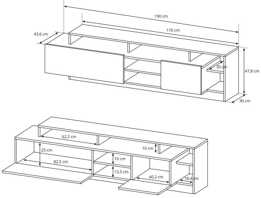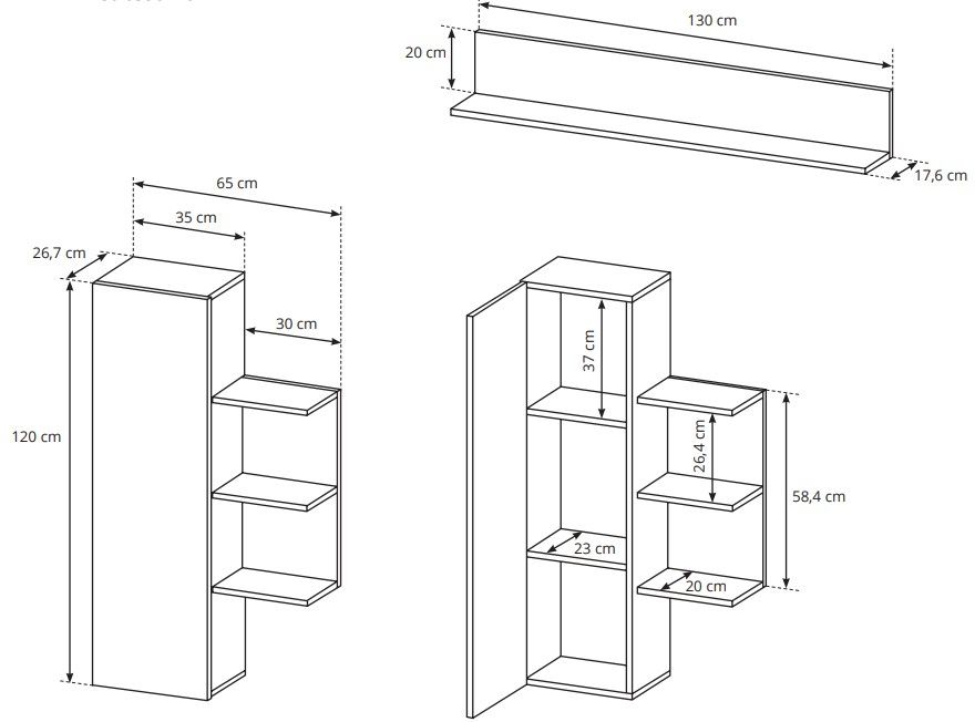 Το σύνθετο σαλονιού της σειράς Oak, χάρη στον μοντέρνο minimal σχεδιασμό του, θα τραβήξει τα βλέμματα και θα γίνει το κέντρο του σαλονιού σας. Αποτελείται από δύο κρεμαστά ντουλάπια, ένα ράφι και μια κομψή βάση τηλεόρασης με ιδιαίτερο design. Τα ντουλάπια έχουν δύο ράφια στο εσωτερικό τους και διαθέτουν μηχανισμό ανοίγματος χωρίς χερούλια. Η βάση τηλεόρασης έχει πολλά ράφια σε διαφορετικά σχήματα, καθώς και δύο ευρύχωρα ντουλάπια.