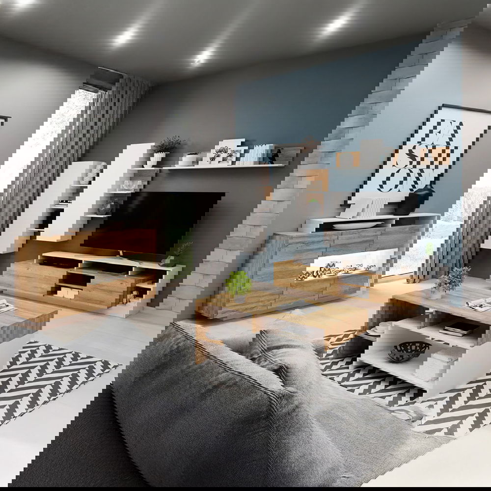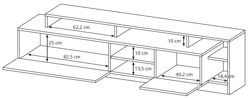 Το σύνθετο σαλονιού της σειράς Oak, χάρη στον μοντέρνο minimal σχεδιασμό του, θα τραβήξει τα βλέμματα και θα γίνει το κέντρο του σαλονιού σας. Αποτελείται από δύο κρεμαστά ντουλάπια, ένα ράφι και μια κομψή βάση τηλεόρασης με ιδιαίτερο design. Τα ντουλάπια έχουν δύο ράφια στο εσωτερικό τους και διαθέτουν μηχανισμό ανοίγματος χωρίς χερούλια. Η βάση τηλεόρασης έχει πολλά ράφια σε διαφορετικά σχήματα, καθώς και δύο ευρύχωρα ντουλάπια.
