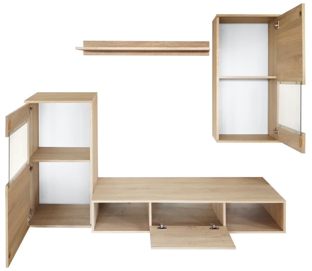 – 1 ντουλάπι στη βάση τηλεόρασης και 2 ανοιχτοί αποθηκευτικοί χώροι