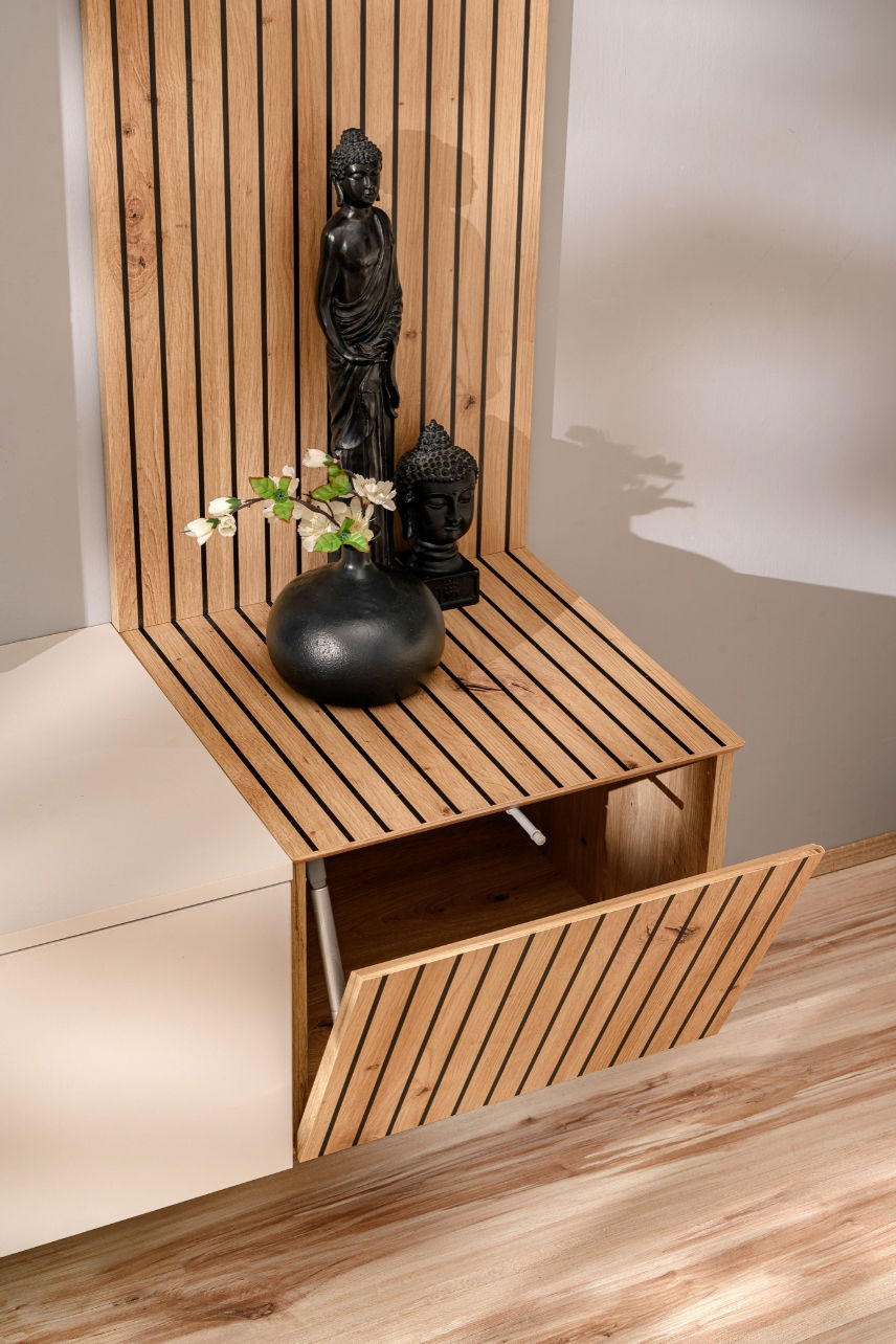Αναβαθμίστε το σαλόνι σας με το σύνθετο σαλονιού Solar και δημιουργήστε έναν εντυπωσιακό και οργανωμένο χώρο ψυχαγωγίας. Απολαύστε το τέλειο μείγμα σύγχρονης καλλιτεχνίας και πρακτικής λειτουργίας σε αυτό το statement κομμάτι μοντέρνου επίπλου σαλονιού.