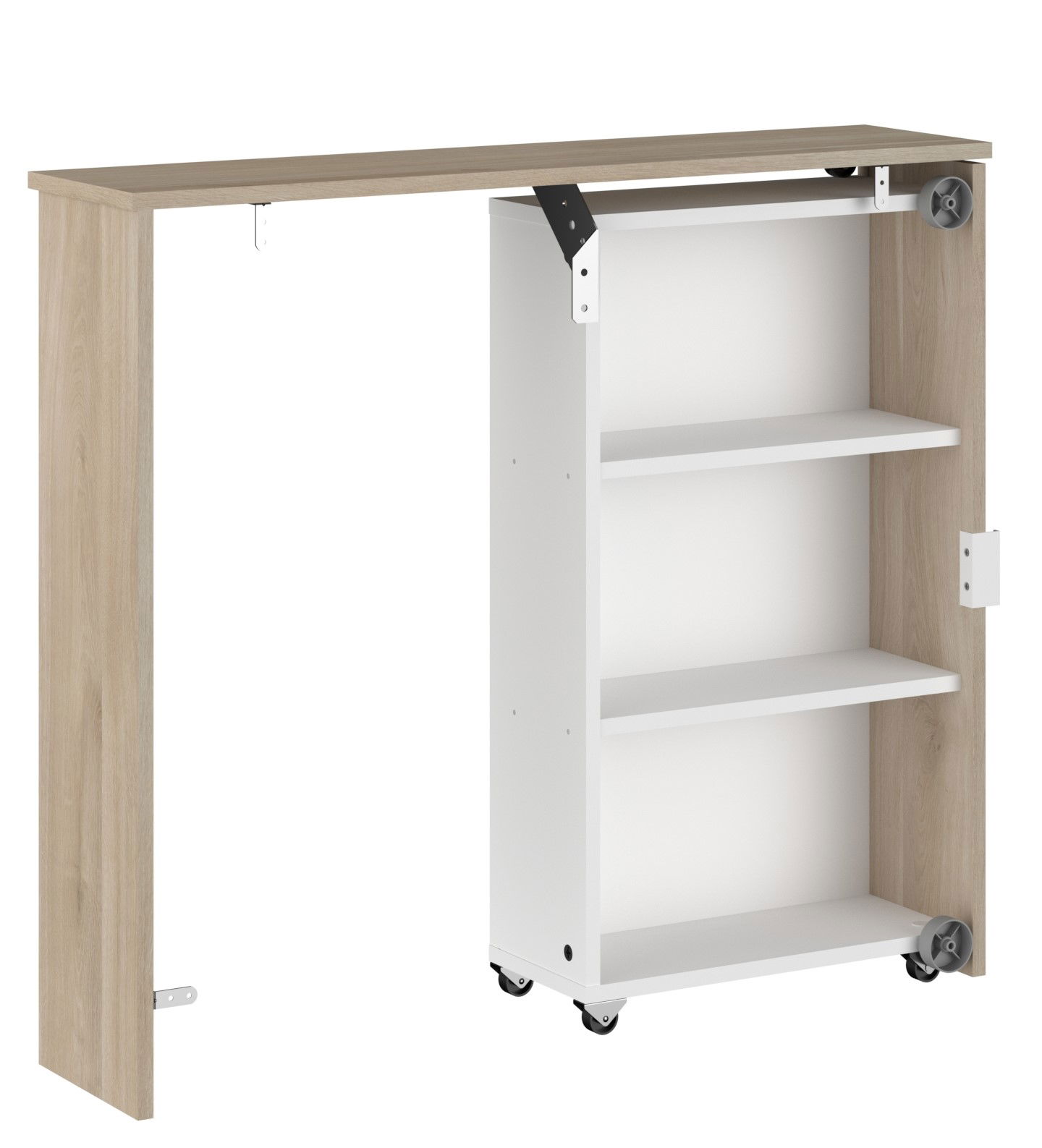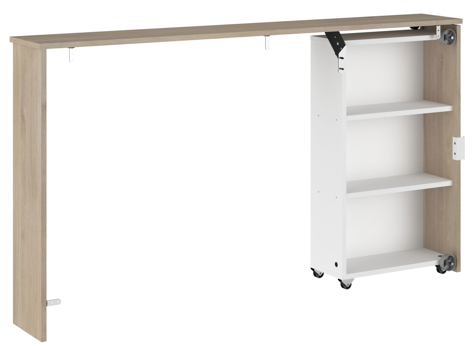 Συρόμενο ντουλάπι κεφαλαριού Randers, ιδανικό να το τοποθετήσετε πίσω από το κρεβάτι Randers. Αποτελείται από δύο ράφια, στα οποία μπορείτε, να αποθηκεύσετε μικροαντικείμενα.