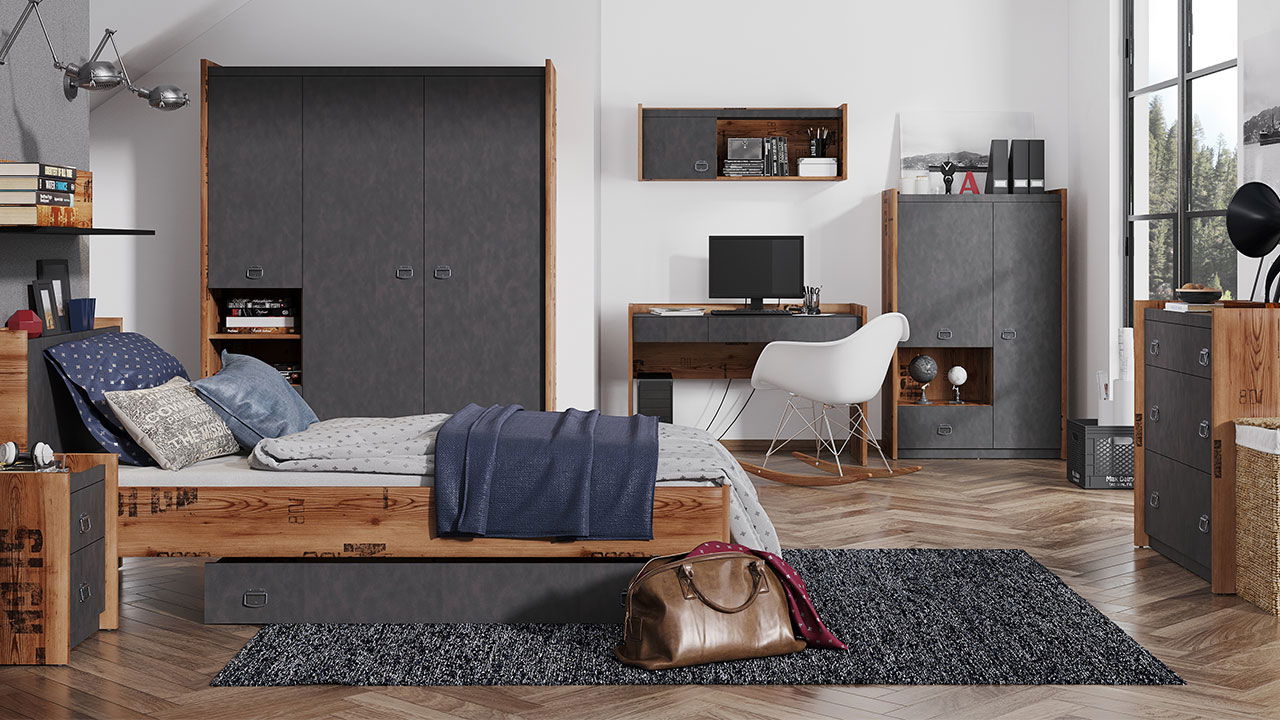 Συρτάρι κρεβατιού Fargo σε φυσικό χρώμα με μαύρες λεπτομέρειες. Συνδυάστε το με τα κρεβάτια της ίδιας σειράς ανεξαρτήτως διαστάσεων για επιπλέον αποθηκευτικό χώρο
