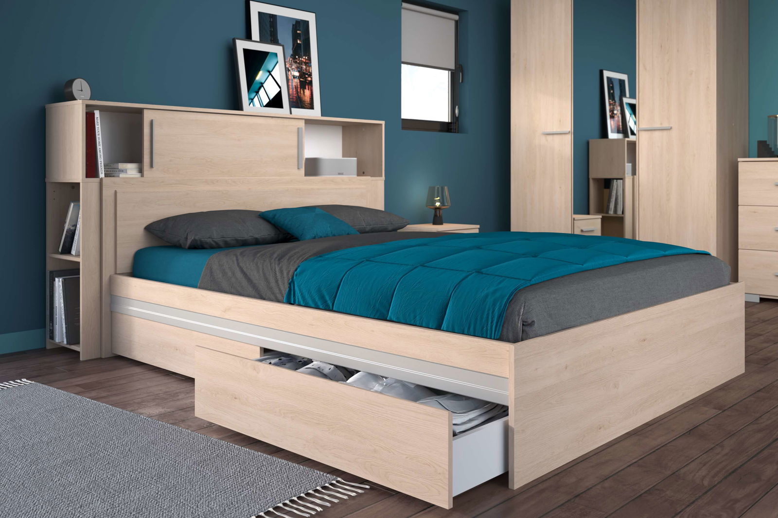 Συρτάρι για το κρεβάτι Railly σε φυσικό χρωματισμό, ώστε να αποτελέσει μια διακριτική, αποθηκευτική επιλογή. Ολοκληρώνει την λειτουργικότητα του κρεβατιού καθώς υπάρχει άμεση πρόσβαση στα απολύτως απαραίτητα αντικείμενα.