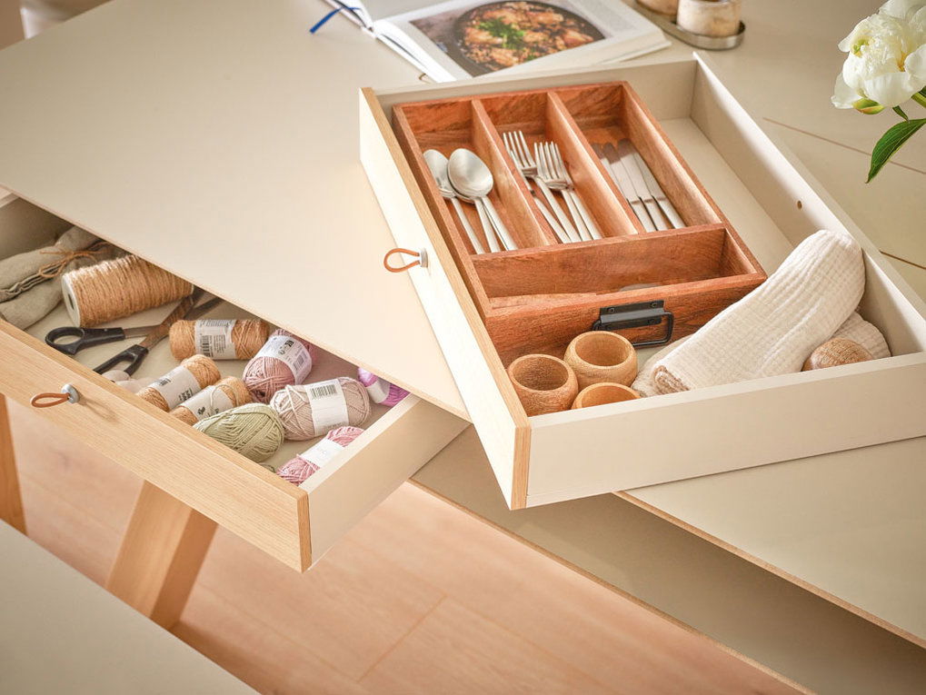 Προσθέτοντας το συρτάρι στα τραπέζια της σειράς 4 You Fresh ενισχύεται ο αποθηκευτικός χώρος στην τραπεζαρία. Μια ιδανική και πρακτική επιλογή για τοποθέτηση όλων των απαραίτητων ειδών για την εστίαση, όπως μαχαιροπίρουνα, πετσέτες κτλ.