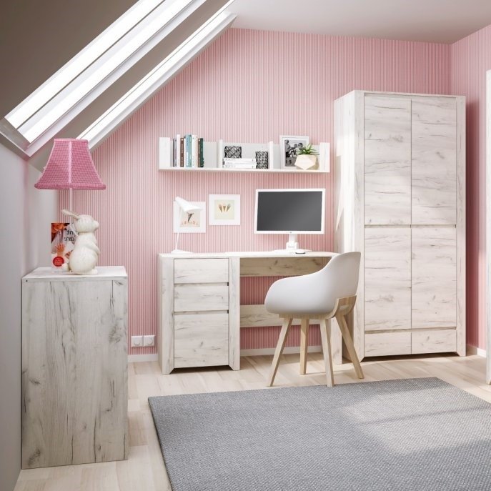 Συρταριέρα πρακτικών διαστάσεων, που θα σας συντροφεύει από την παιδική έως και την εφηβική ηλικία! Το χαμηλό της ύψος της επιτρέπει να χρησιμοποιείται και από μικρά παιδιά. Χάρη στο χρώμα λευκού ξύλου, είναι κατάλληλη και για τα δύο φύλα.