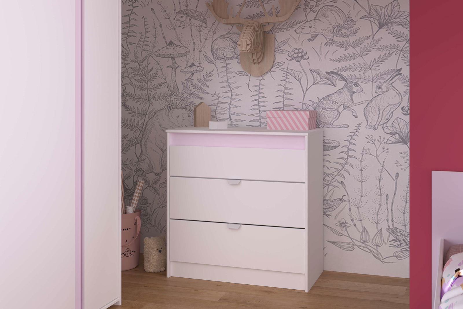 H συρταριέρα Ballet αποτελλεί μια ιδανική επιλογή για να εξοπλίσετε το δωμάτιο του παιδιού σας. Παρέχει τον έξτρα αποθηκευτικό χώρο που χρειάζεστε ενώ ο συνδυασμός χρωμάτων της θα ανανεώσει ευχάριστα το χώρο! Τα χρωματιστά μέρη του επίπλου είναι αντιστρέψιμα δίνοντας σας την επιλογή να προσθέσετε είτε ροζ είτε γκρι λεπτομέρειες στον χώρο σας. Συνδυάστε την ιδανικά με τα υπόλοιπα έπιπλα της σειράς για ένα ολοκληρωμένο αποτέλεσμα επίπλωσης.