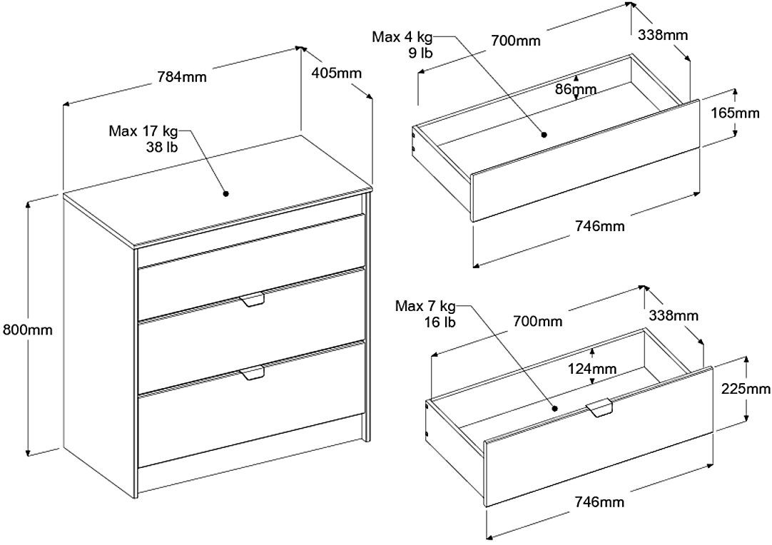 – 3 συρτάρια