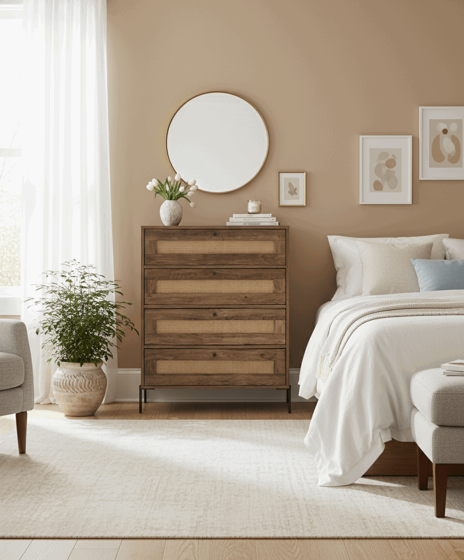 Η συρταριέρα Bavaria προσφέρει άφθονο χώρο αποθήκευσης με 4 ευρύχωρα συρτάρια, ενώ διατηρεί κομψό και λειτουργικό σχεδιασμό για κάθε δωμάτιο.