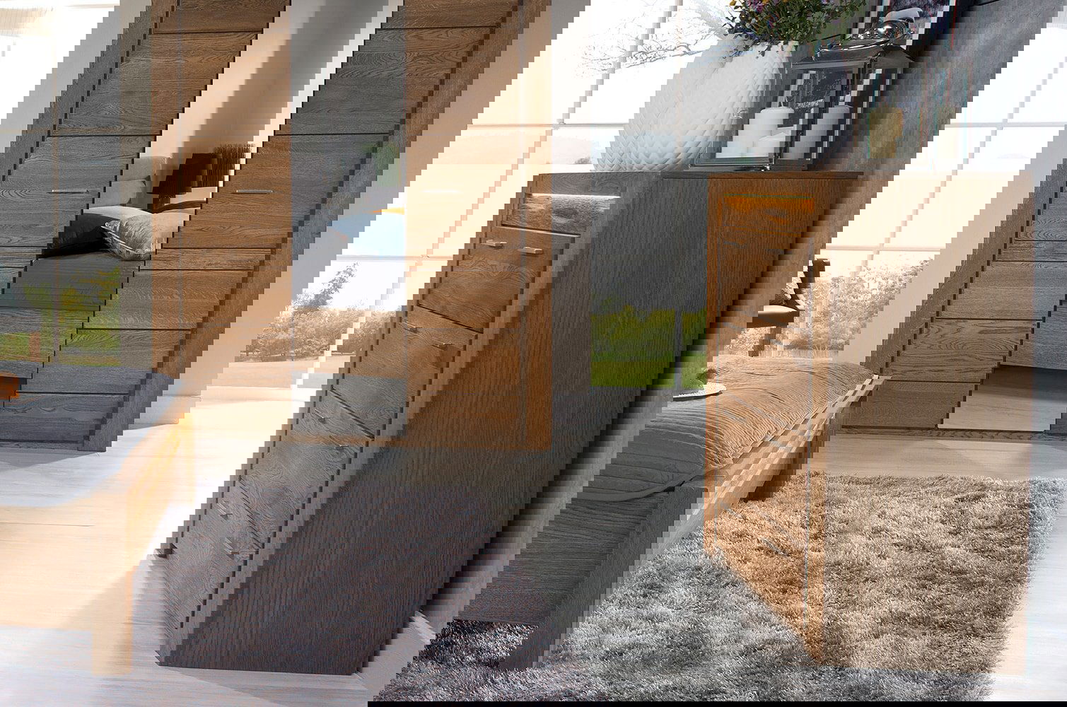 Συρταριέρα Denny υψηλής αισθητικής με φυσικές λεπτομέρειες ξύλου και κρυφό φωτισμό, για ένα εντυπωσιακό αποτέλεσμα
