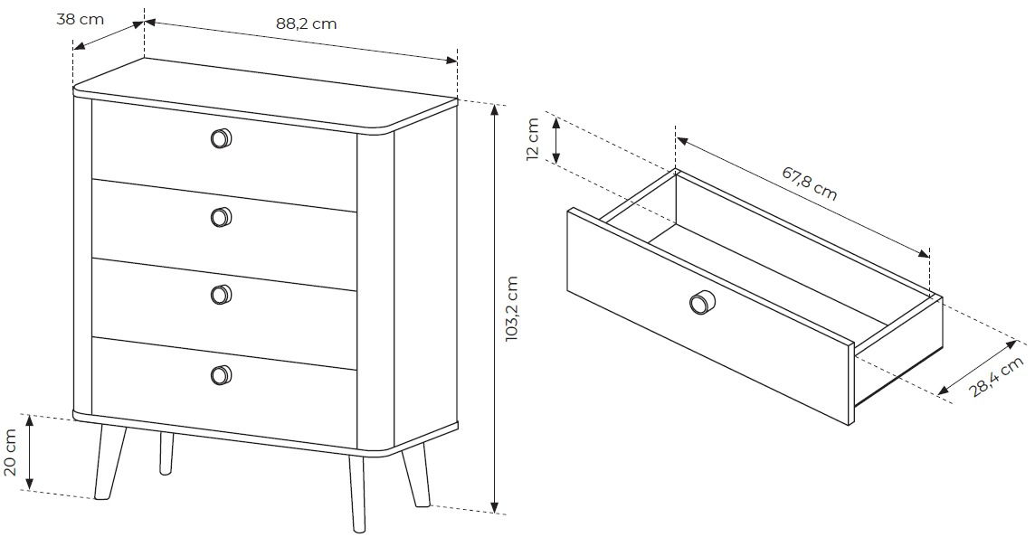 Φέρτε ένα ευχάριστο μείγμα μοντέρνου στυλ και πρακτικής αποθήκευσης στην κρεβατοκάμαρά σας με την συρταριέρα Sandra 4S. Με καθαρή σιλουέτα, ζεστό φινίρισμα σε απόχρωση ξύλου και γοητευτικές στρογγυλές λαβές, αυτή η συρταριέρα θα προσθέσει μια πινελιά ρετρό κομψότητας στο χώρο σας, ενώ θα κρατάει τα πράγματά σας τακτοποιημένα.