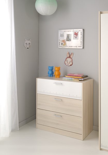 Συρταριέρα Scala με 3 συρτάρια. Μπορείτε να την συνδυάσετε με την σειρά Scala. Διατίθεται στον χρωματικό συνδυασμό δρυς-λευκό.