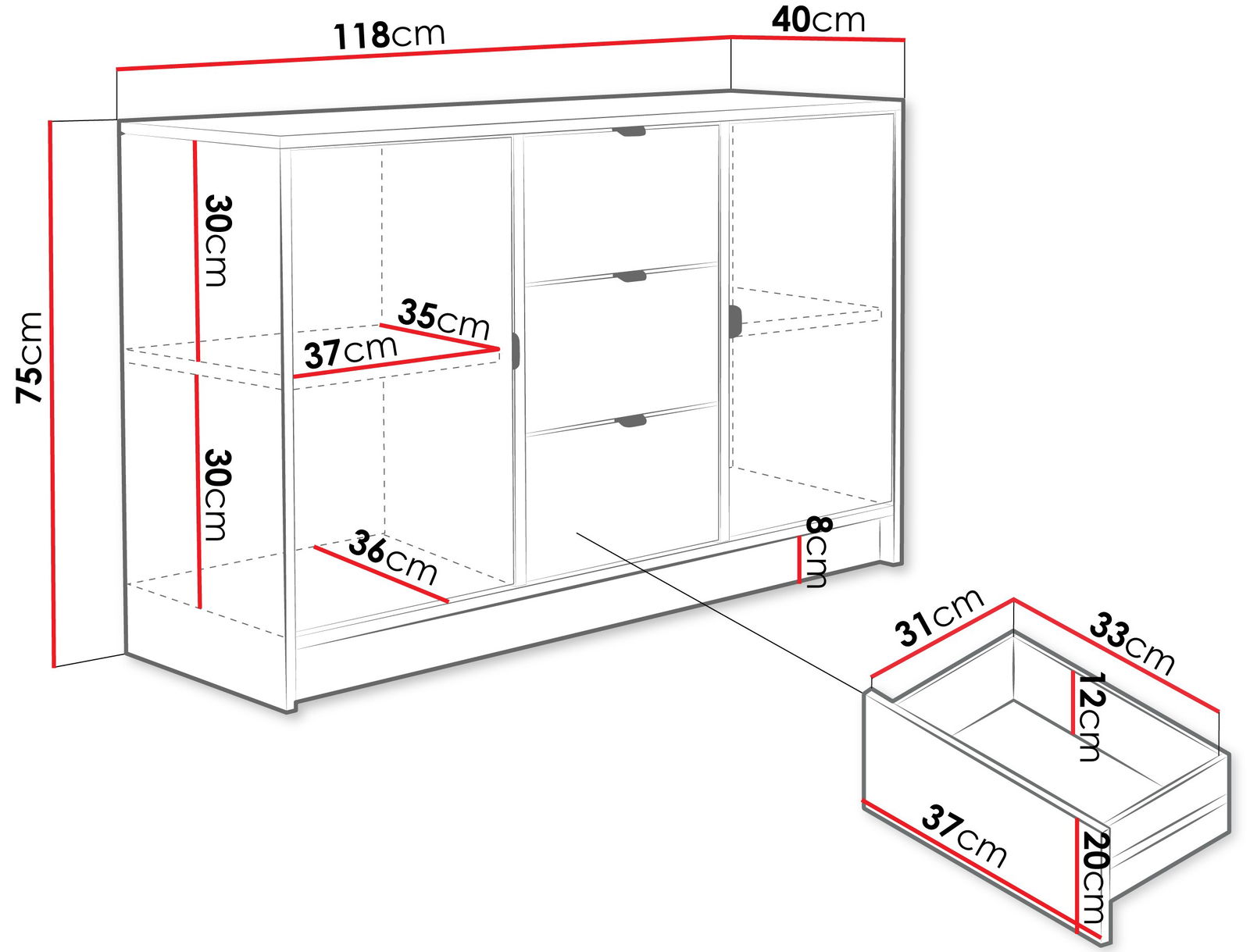 Συρταριέρα Tireno 2D3SZ κομψού σχεδιασμού με ευρύχωρους εσωτερικούς χώρους