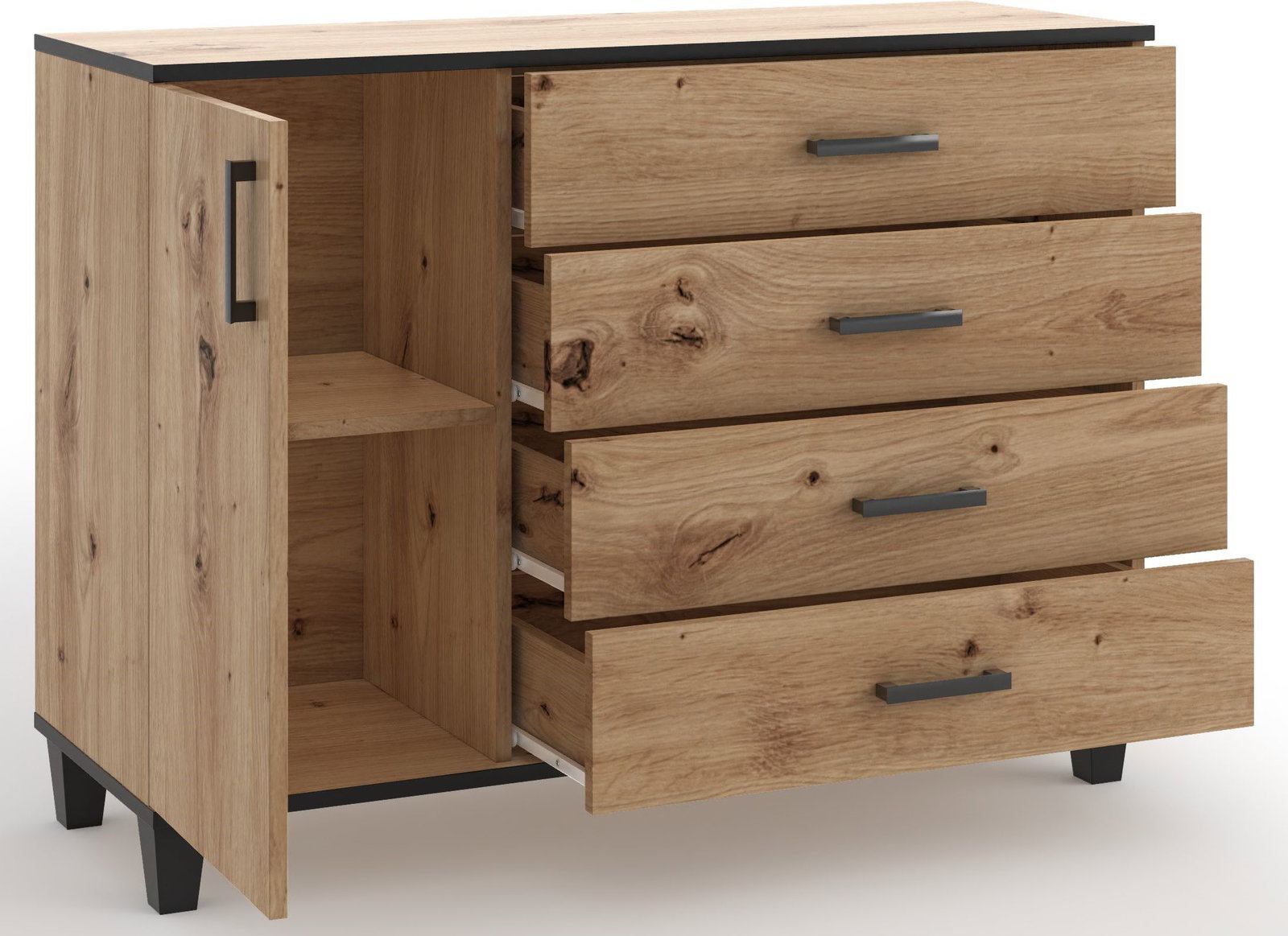 Συρταριέρα Tomba, μια πρακτική επιλογή σε μοντέρνο design που θα ανανεώσει τον χώρο σας. Διαθέτει 4 ευρύχωρα συρτάρια καθώς και ένα ντουλαπάκι με ράφι εσωτερικά. Αποκτήστε την άμεσα και συνδυάστε την με τα υπόλοιπα προϊόντα της σειράς.