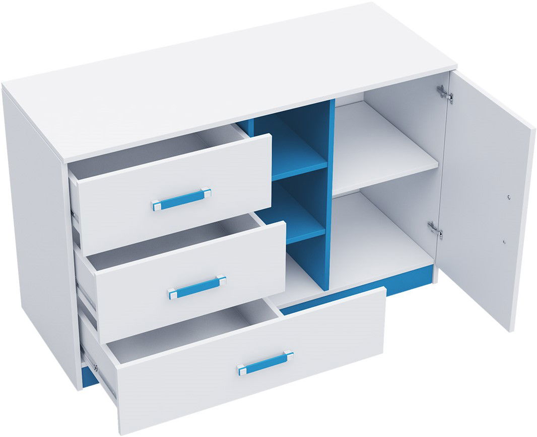 Η συρταριέρα Trafiko, σε μοντέρνο σχεδιασμό διχρωμίας, είναι η ιδανική επιλογή για την αποθήκευση ρούχων και μικροαντικειμένων για το παιδικό δωμάτιο.