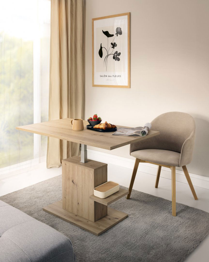 Το τραπεζάκι σαλονιού Cordell IV προσφέρει το σύγχρονο και ευέλικτο στοιχείο που χρειάζεται το σαλόνι σας. Αυτό το πολυχρηστικό κομμάτι μεταμορφώνεται με ευκολία από μικρό τραπέζι σε τραπέζι φαγητού. Διαθέτει μηχανισμό ανύψωσης και πλαϊνό ράφι. Ο προσαρμοστικός του σχεδιασμός του το επιτρέπει να ταιριάζει με κάθε εσωτερικό στυλ και επιπλέον το κάνει κατάλληλο για μικρούς και στενούς χώρους. Ανακαλύψτε και τα υπόλοιπα τραπεζάκια σαλονιού της σειράς Cordell.