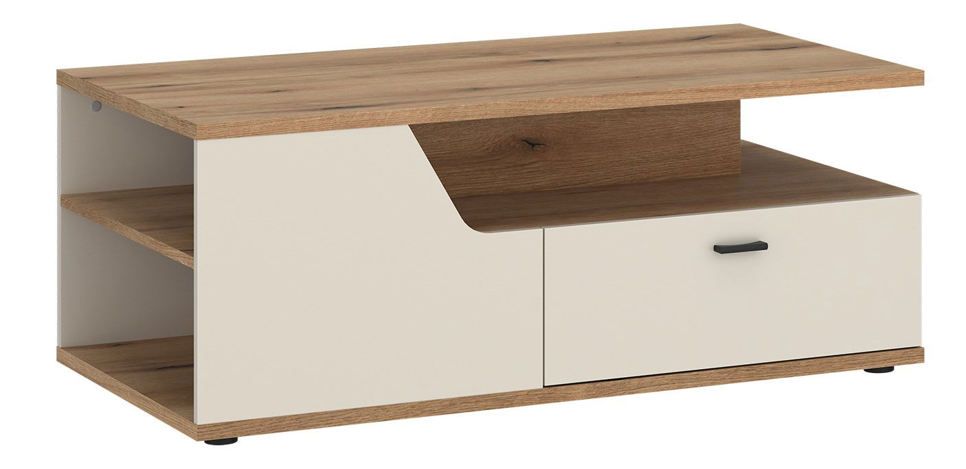 Τραπεζάκι σαλονιού Cutou, μοναδικού σχεδιασμού σε αποχρώσεις διχρωμίας που προσδίδουν μοντέρνα αισθητική και αποφέρουν στυλ, ιδανικό για κάθε σαλόνι. Στο κάτω μέρος, διαθέτει ένα συρτάρι για επιπλέον αποθηκευτικό χώρο και ανοιχτό αποθηκευτικό χώρο για επιπλέον αποθήκευση χρήσιμων αντικειμένων. Συνδυάστε το, με την υπόλοιπη σειρά Cutou.