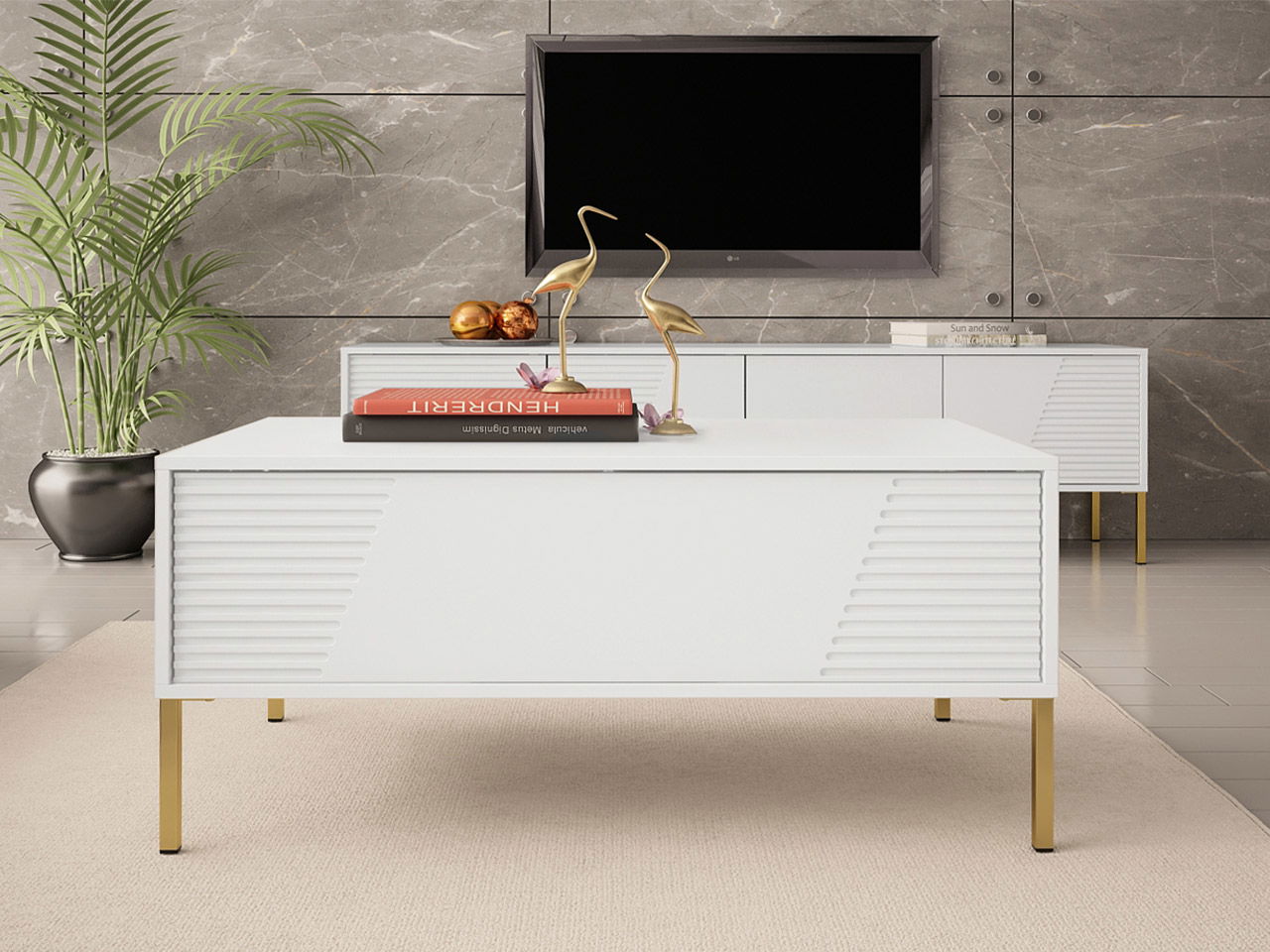 Το τραπεζάκι σαλονιού Debora, είναι το ιδανικό τραπεζάκι για κάθε σαλόνι. Η κάτω επιφάνεια μπορεί να χρησιμοποιηθεί σαν επιπλέον αποθηκευτικός χώρος.Θα κλέψει τις εντυπώσεις και θα κεντρίσει το ενδιαφέρον των καλεσμένων σας.