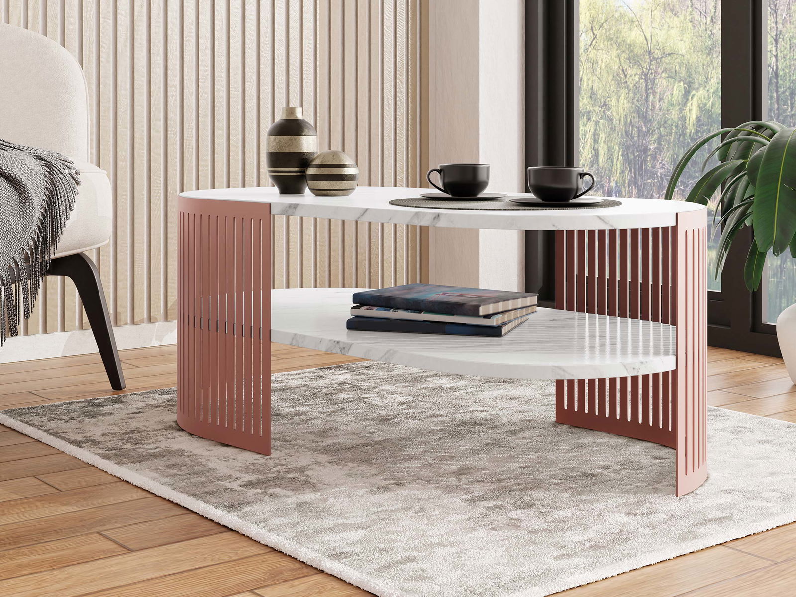Το λαμπερό και κομψό τραπεζάκι σαλονιού Fikoli Ember I είναι ένα statement κομμάτι για κάθε μοντέρνο σαλόνι. Το μοναδικό οβάλ σχήμα και οι κάθετες ροζ πινελιές δημιουργούν μια οπτικά ελκυστική και εντυπωσιακή εμφάνιση.