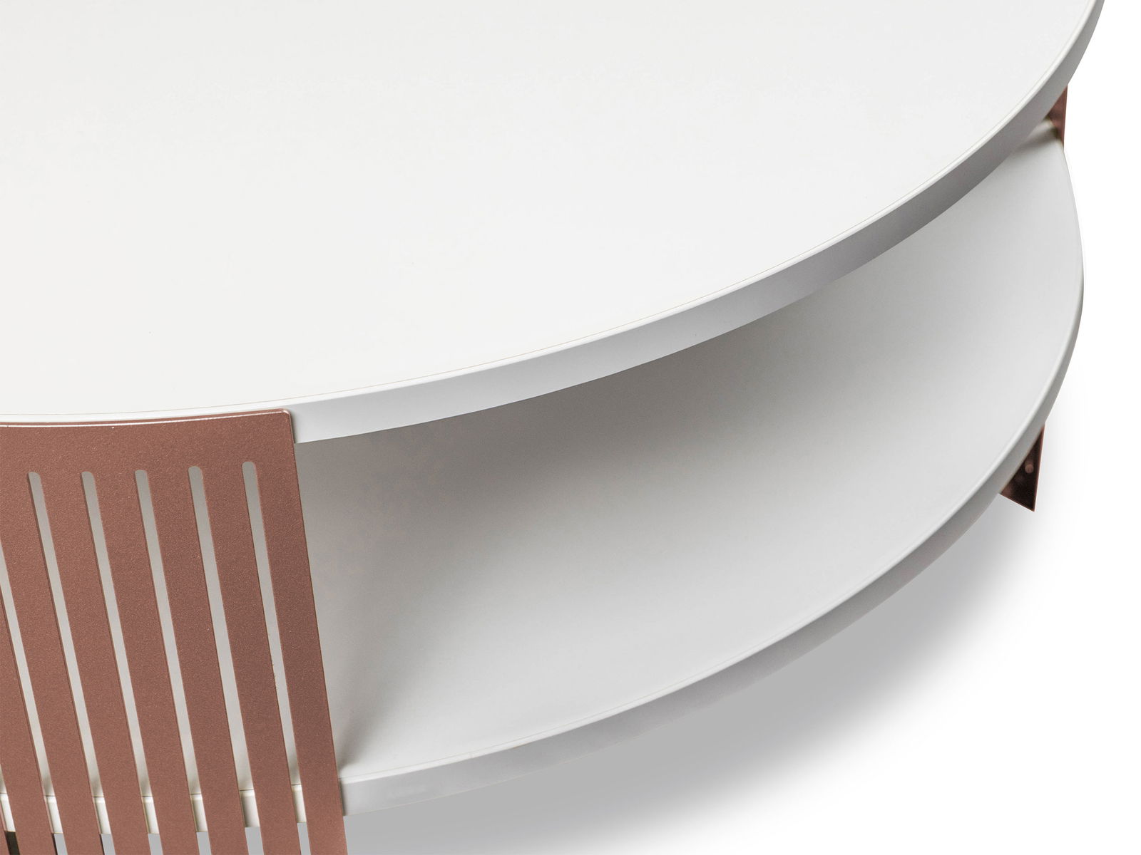 Το κομψό τραπεζάκι σαλονιού Fikoli Ember είναι ένα statement κομμάτι για κάθε μοντέρνο σαλόνι. Ο μοναδικός σχεδιασμός με το στρογγυλό σκελετό και τις κάθετες λάμες δημιουργεί μια οπτικά ελκυστική και εντυπωσιακή εμφάνιση. Επιπλέον, ο συνδυασμός των χρωμάτων προσθέτει μια πινελιά εκλεπτυσμού.