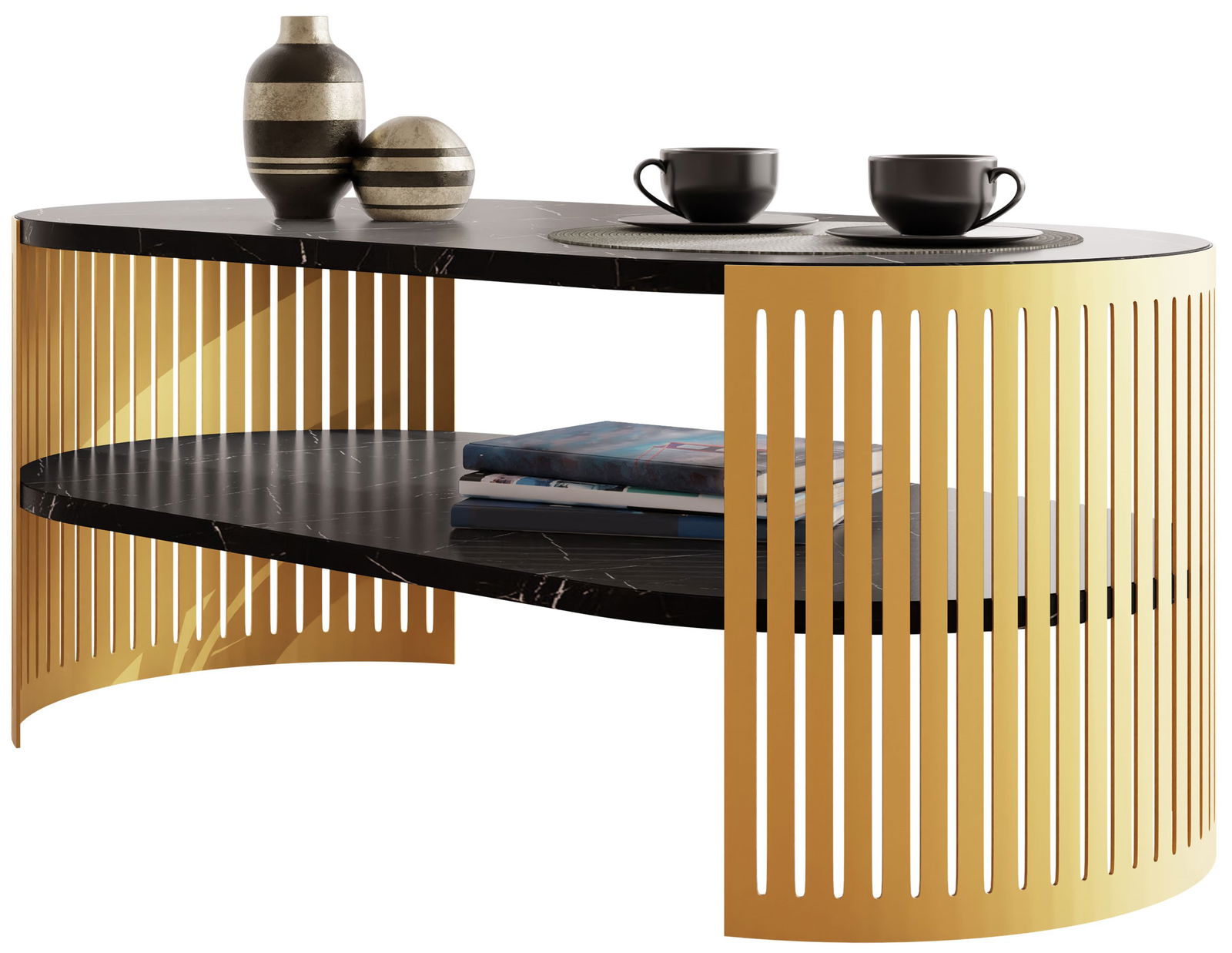 Το λαμπερό κομψό τραπεζάκι σαλονιού Fikoli GD I είναι ένα statement κομμάτι για κάθε μοντέρνο σαλόνι. Το μοναδικό οβάλ σχήμα και οι κάθετες χρυσές πινελιές δημιουργούν μια οπτικά ελκυστική και εντυπωσιακή εμφάνιση.