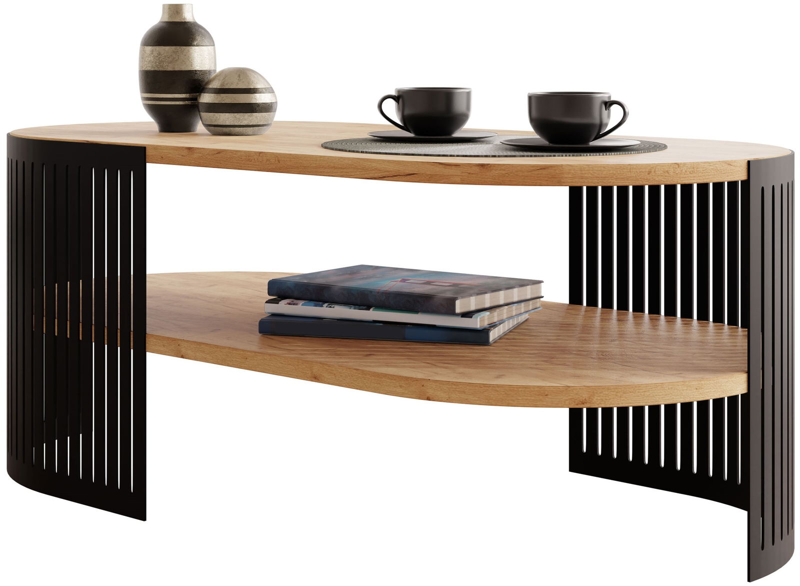Το κομψό τραπεζάκι σαλονιού Fikoli II είναι ένα statement κομμάτι για κάθε μοντέρνο σαλόνι. Το μοναδικό οβάλ σχήμα και οι κάθετες μαύρες πινελιές δημιουργούν μια οπτικά ελκυστική και εντυπωσιακή εμφάνιση.