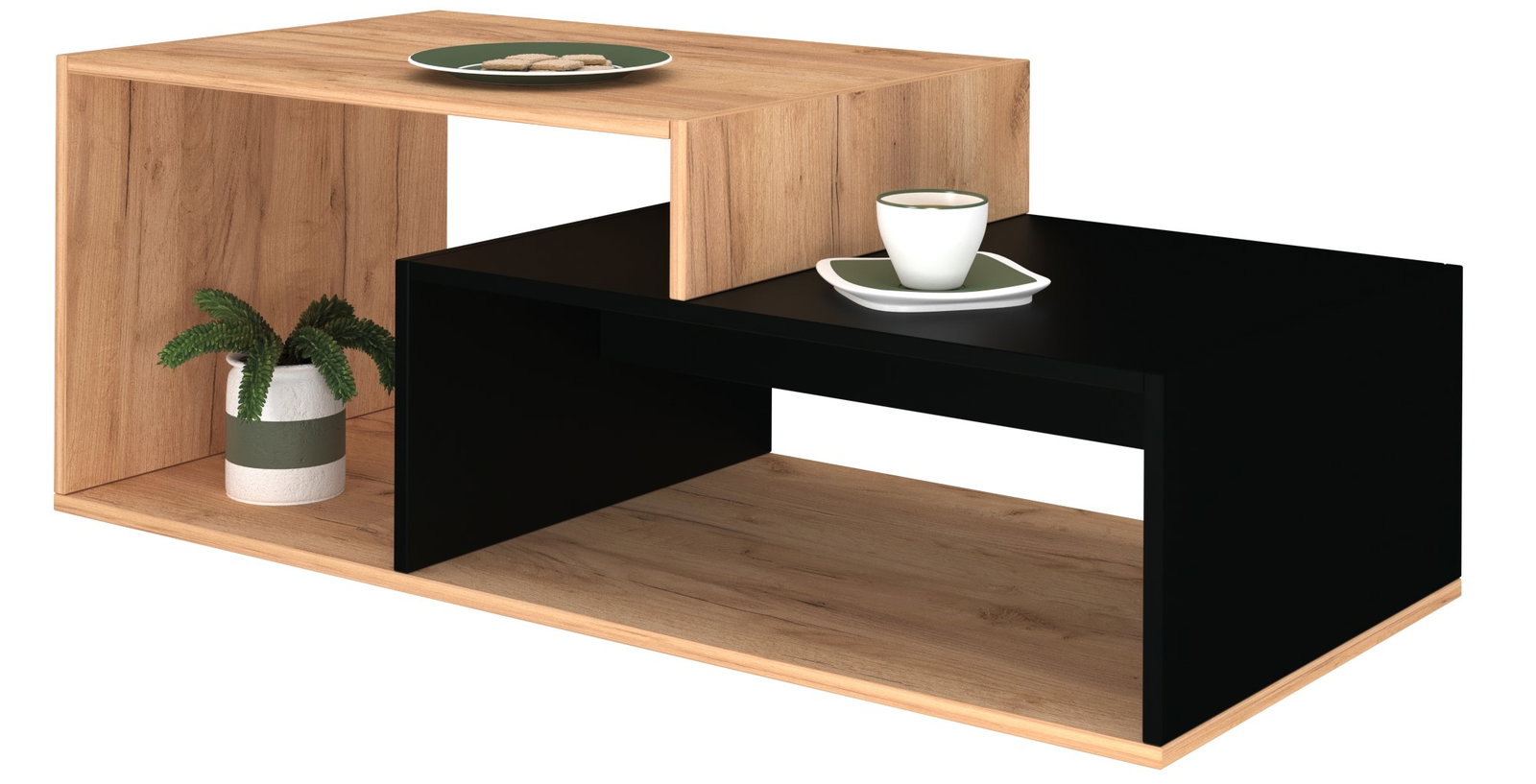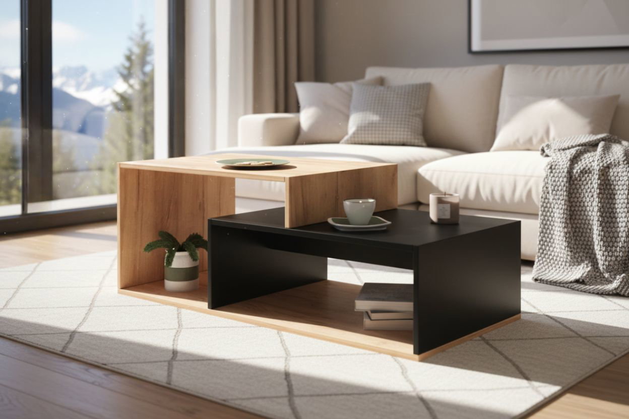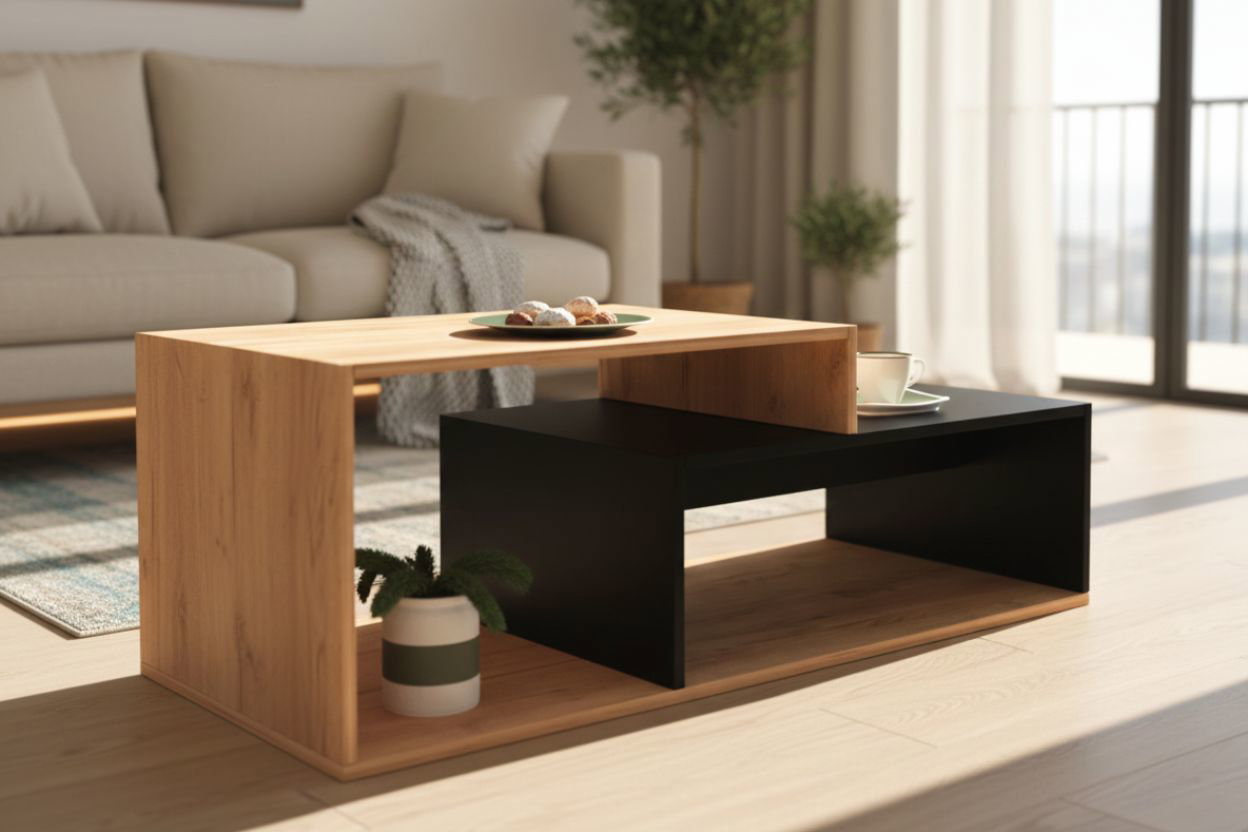 Χαμηλό τραπεζάκι σαλονιού Kara, σε μοντέρνα διχρωμία. Μια διακριτική επιλογή που θα προσφέρει άνεση, πρακτικότητα και θα τονώσει ζεστά την αισθητική του σαλονιού.