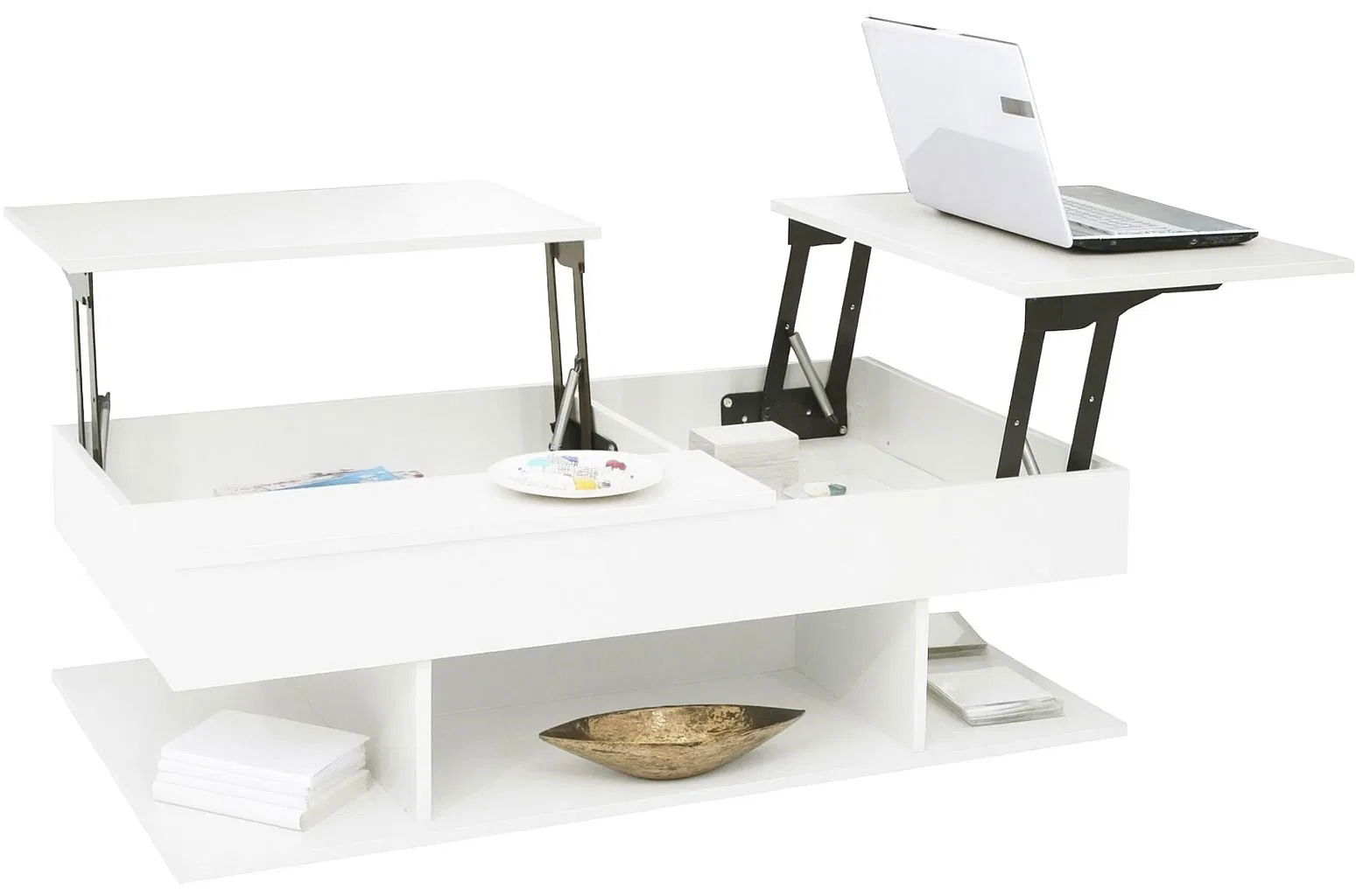 Το τραπεζάκι σαλονιού Linda συνδυάζει λειτουργικότητα και κομψότητα με 2 ανακλινόμενες επιφάνειες, αποθηκευτικό χώρο κάτω από αυτές και ένα κρυφό ντουλάπι για επιπλέον οργάνωση.