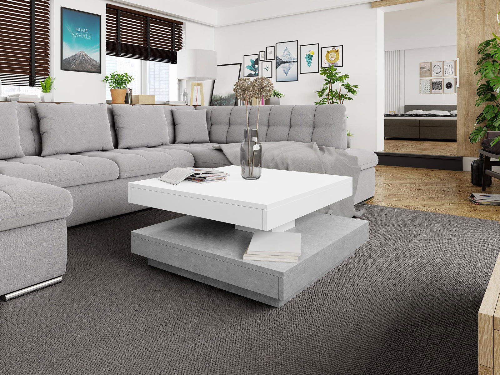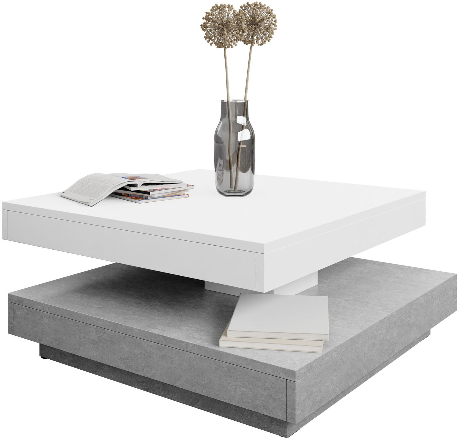 Το τραπεζάκι σαλονιού Nenani, με μοντέρνο σχεδιασμό, είναι το ιδανικό τραπεζάκι για κάθε σαλόνι. Διαθέτει δύο επιφάνειες πάνω-κάτω. Η επάνω επιφάνεια διαθέτει μηχανισμό χάρη στον οποίο μπορεί να περιστραφεί 360 μοίρες.