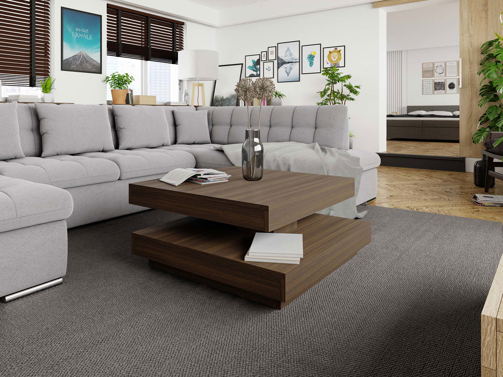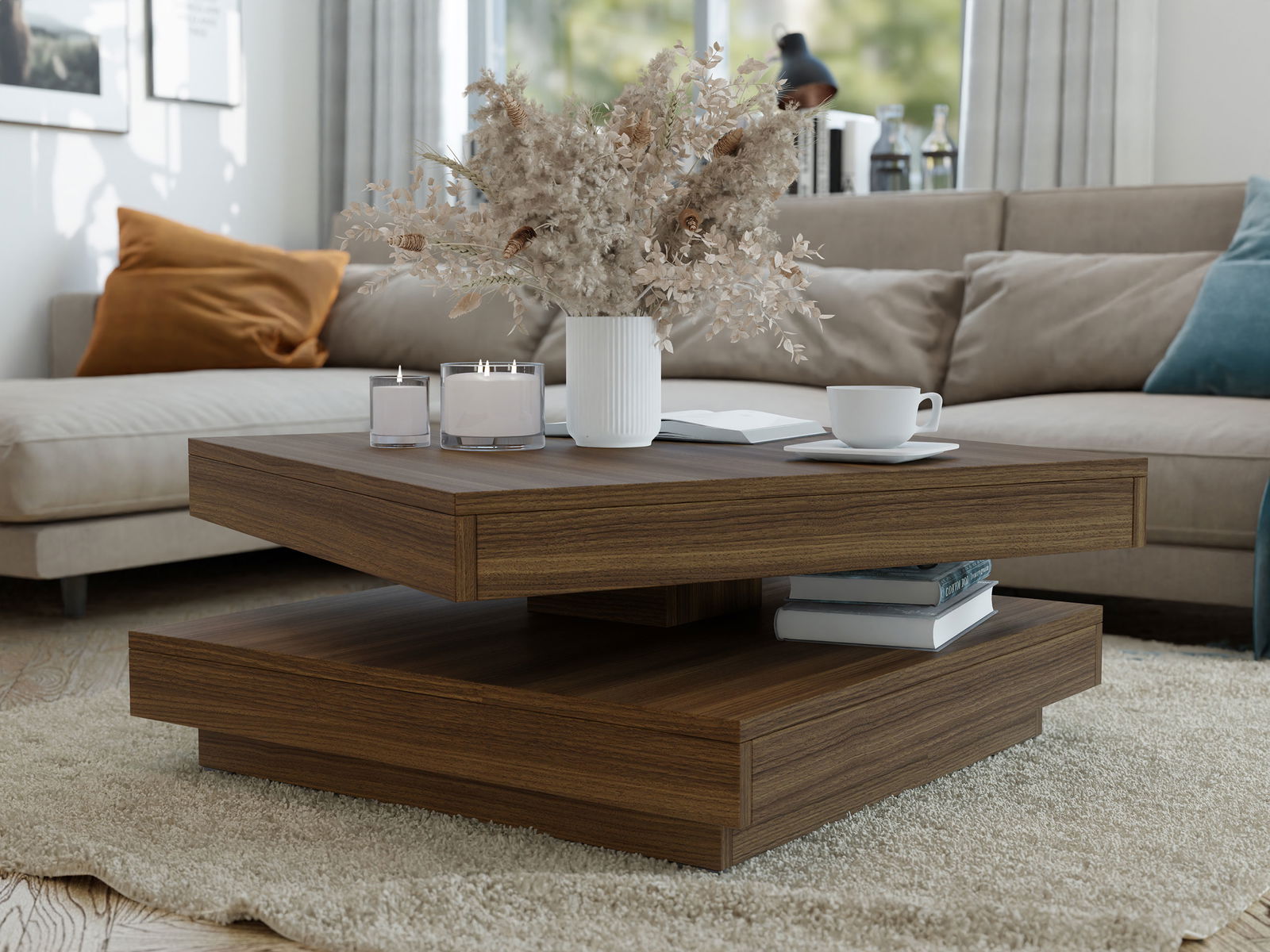 Το τραπεζάκι σαλονιού Nenani, με μοντέρνο σχεδιασμό, είναι το ιδανικό τραπεζάκι για κάθε σαλόνι. Διαθέτει δύο επιφάνειες πάνω-κάτω. Η επάνω επιφάνεια διαθέτει μηχανισμό χάρη στον οποίο μπορεί να περιστραφεί 360 μοίρες.