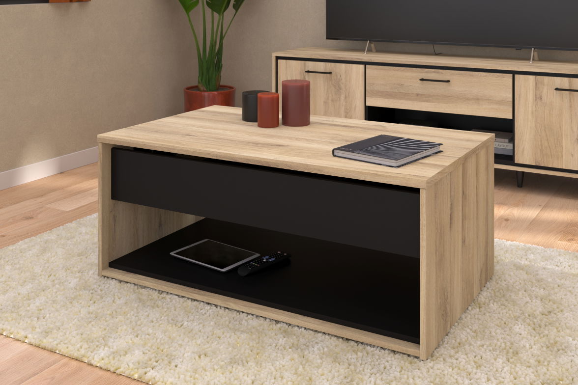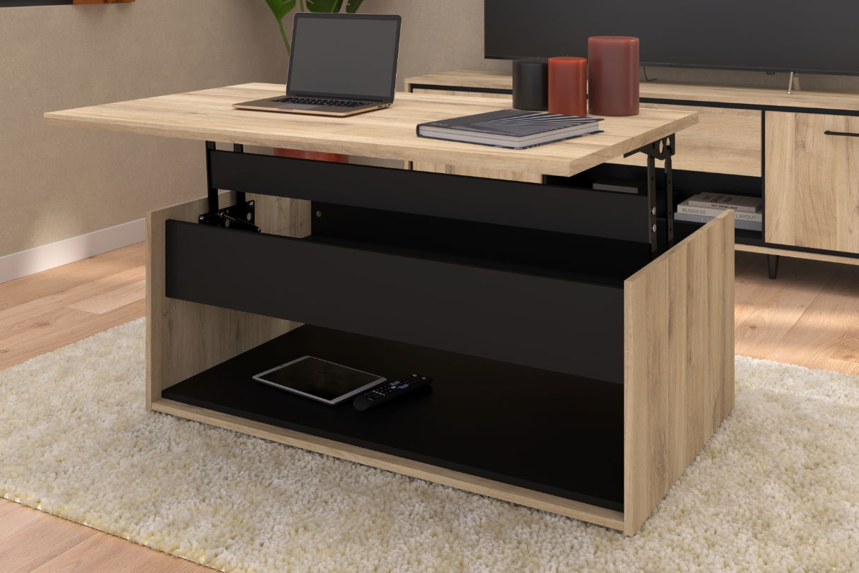 Το τραπεζάκι σαλονιού Rasty είναι μοντέρνο και πρακτικό έπιπλο με αναδιπλούμενη επιφάνεια, ιδανικό για εργασία, γεύμα ή αποθήκευση.