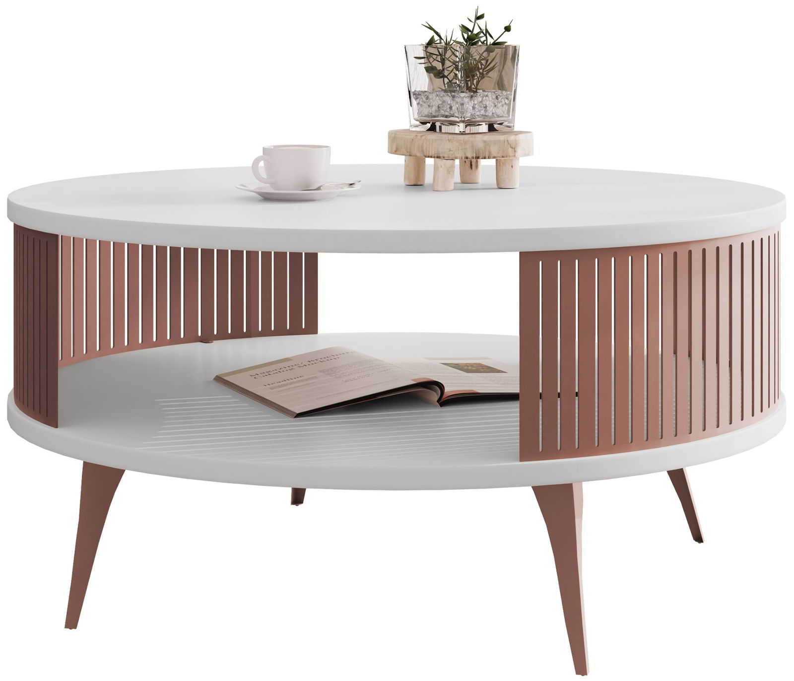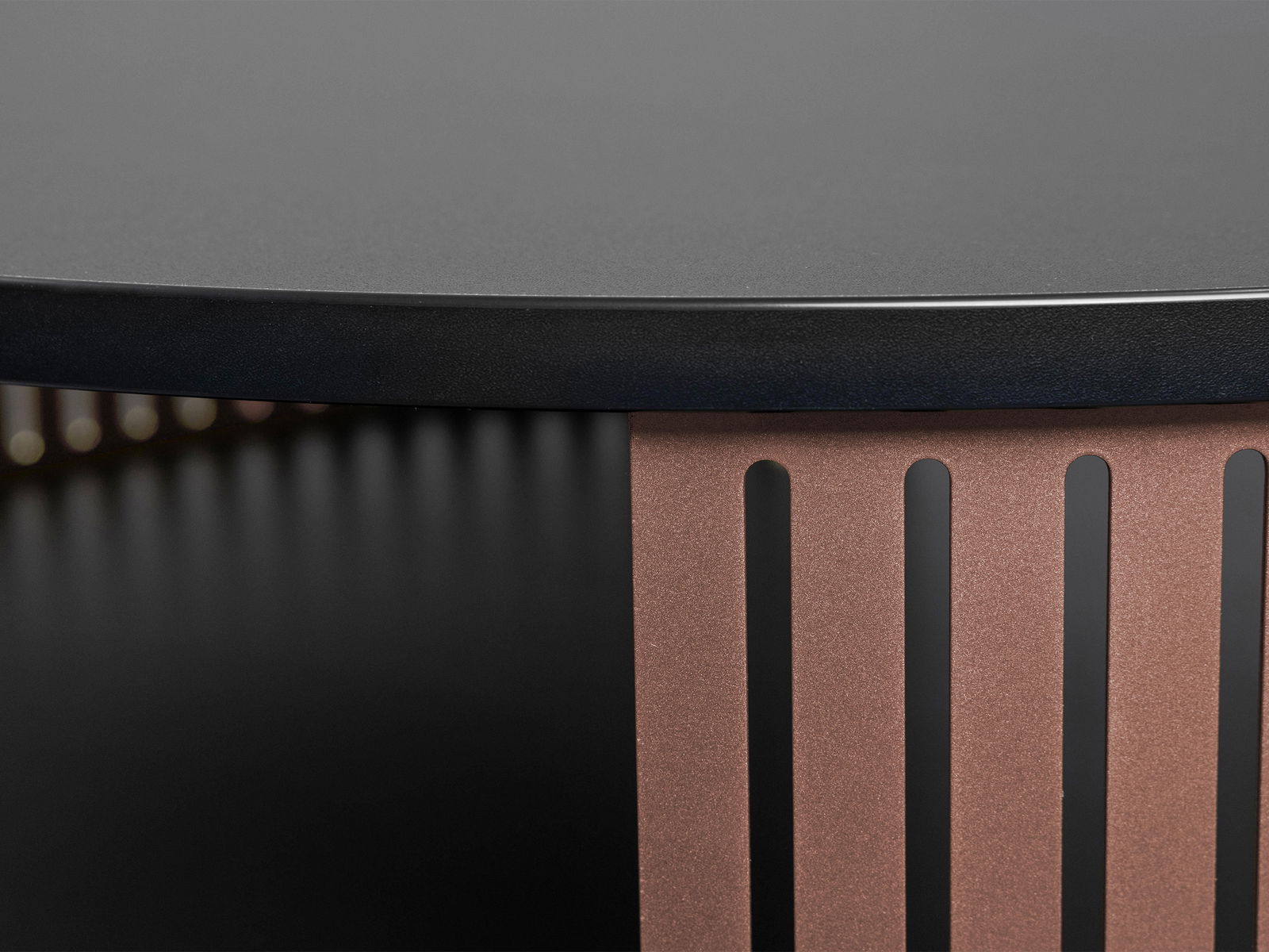 Το κομψό τραπεζάκι σαλονιού Roenni Ember είναι ένα statement κομμάτι για κάθε μοντέρνο σαλόνι. Ο μοναδικός σχεδιασμός με το στρογγυλό σκελετό και τις κάθετες λάμες δημιουργεί μια οπτικά ελκυστική και εντυπωσιακή εμφάνιση. Επιπλέον, ο συνδυασμός των χρωμάτων προσθέτει μια πινελιά εκλεπτυσμού.