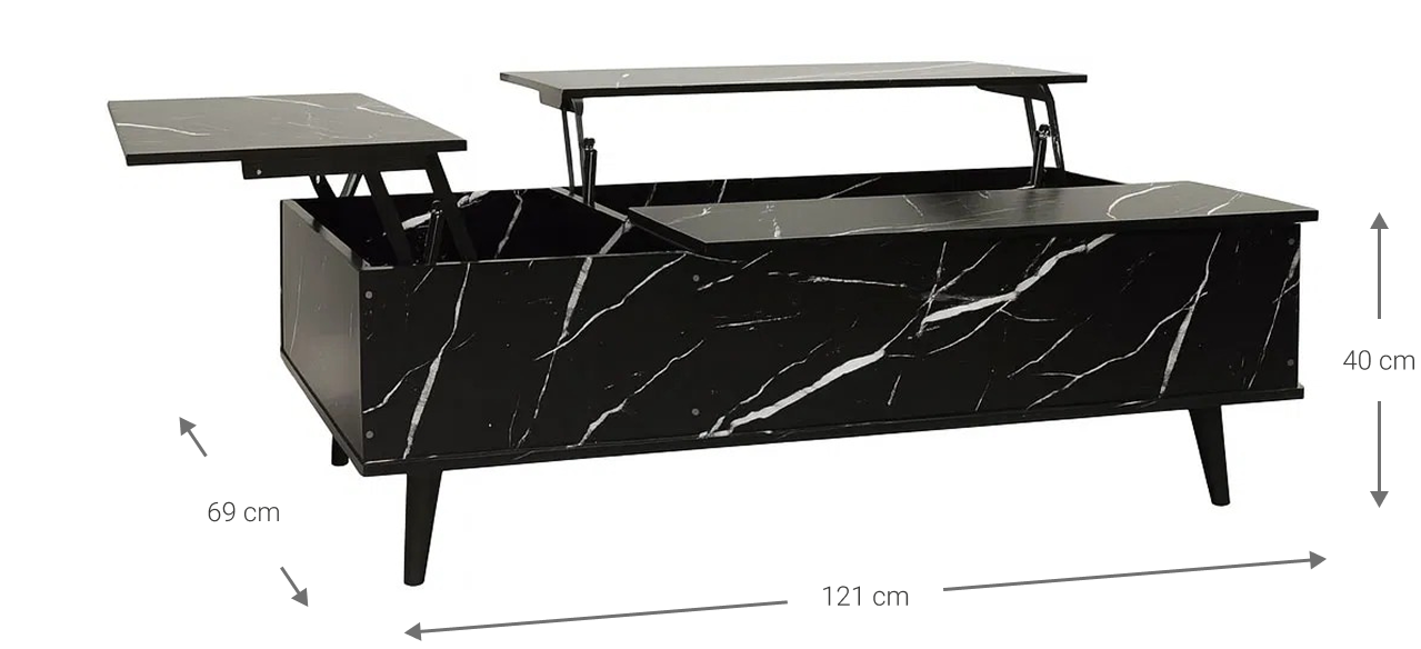 Το τραπεζάκι σαλονιού Sterling συνδυάζει μοντέρνο design με πρακτικότητα, προσφέροντας 3 ανακλινόμενες επιφάνειες και άφθονο αποθηκευτικό χώρο κάτω από αυτές.