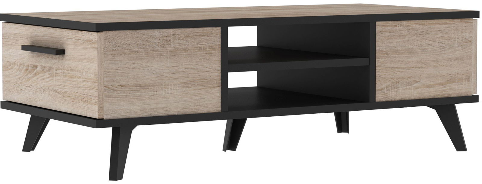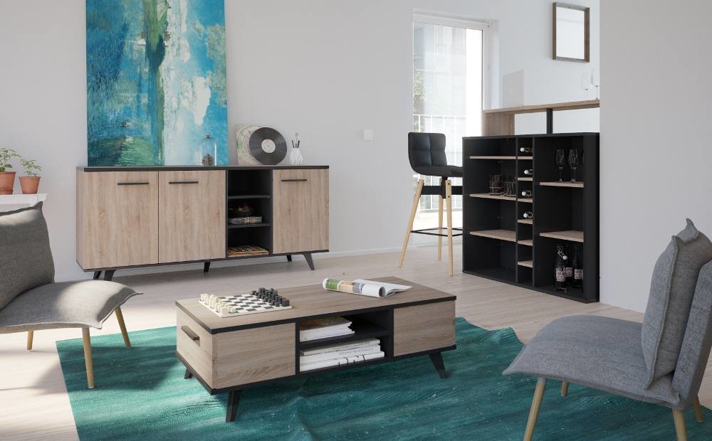 Μοντέρνου σχεδιασμού χαμηλό τραπεζάκι Valdo, σε όμορφη χρωματική αντίθεση με επαρκείς αποθηκευτικούς χώρους.