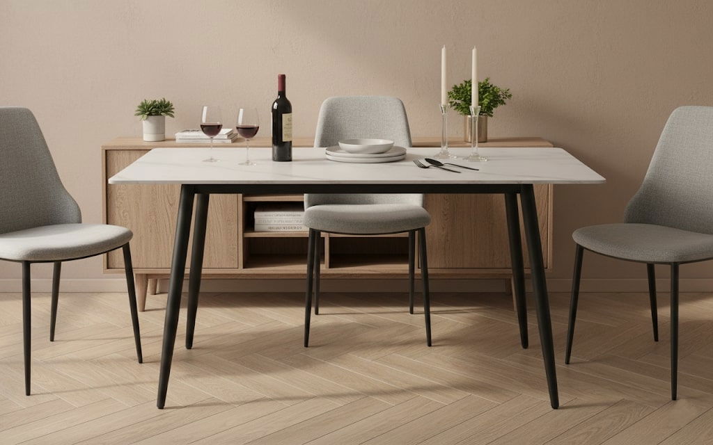 Το τραπέζι Esper ξεχωρίζει για τον διαχρονικό του σχεδιασμό και τη στιβαρή κατασκευή του. Η επιφάνεια από συνθετική πέτρα προσφέρει κομψότητα και πρακτικότητα, καθιστώντας το μια εξαιρετική επιλογή για κάθε σύγχρονη κουζίνα ή τραπεζαρία.