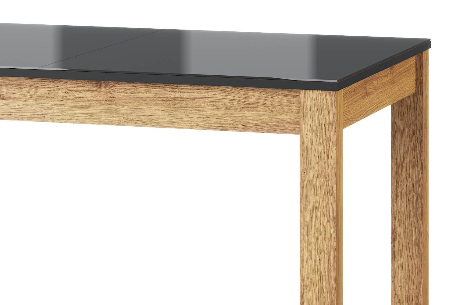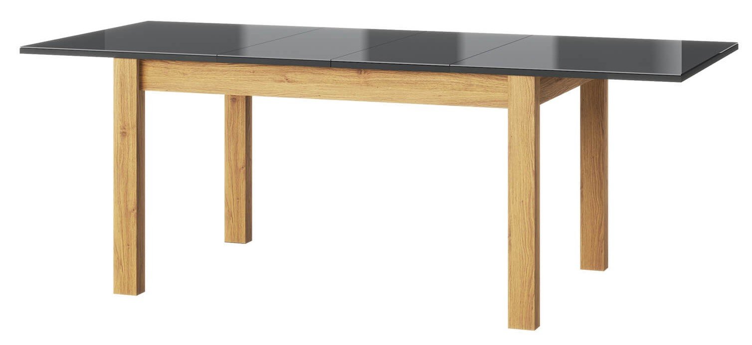 Τραπέζι Leon κομψού σχεδιασμού με μαύρη γυάλινη επιφάνεια που θα δώσει έναν μοντέρνο και ανανεωμένο τόνο στον χώρο, κατάλληλο για την φιλοξενία πολλών ατόμων χάρις της επεκτεινόμενης επιφάνειας του.