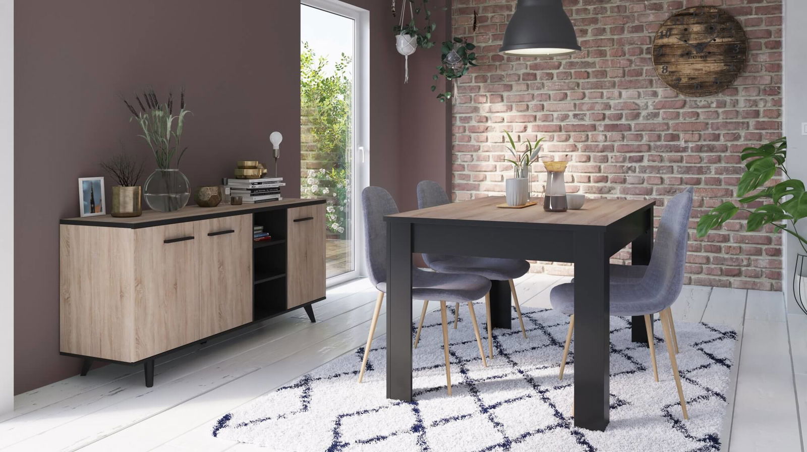 Ένα μοντέρνο τραπέζι που ακολουθεί πιστά μια industrial γραμμή, θα ολοκληρώσει την τραπεζαρία σας. Η κομψή διχρωμία του θα αναβαθμίσει την αισθητική του χώρου σας. Μπορείτε να το συνδυάσετε με τα υπόλοιπα έπιπλα της σειράς για ένα ολοκληρωμένο αποτέλεσμα!