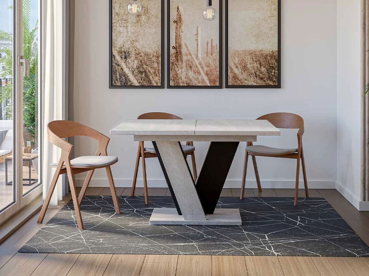 Το τραπέζι Viney επεκτεινόμενο είναι το ιδανικό έπιπλο για την τραπεζαρία. Η βάση του είναι σχεδιασμένη σε σχήμα γράμματος «V», το οποίο τονίζει τον μοντέρνο σχεδιασμό του επίπλου. Η μινιμαλιστική μορφή του τραπεζιού αντιστοιχεί στις τρέχουσες τάσεις του σχεδιασμού.