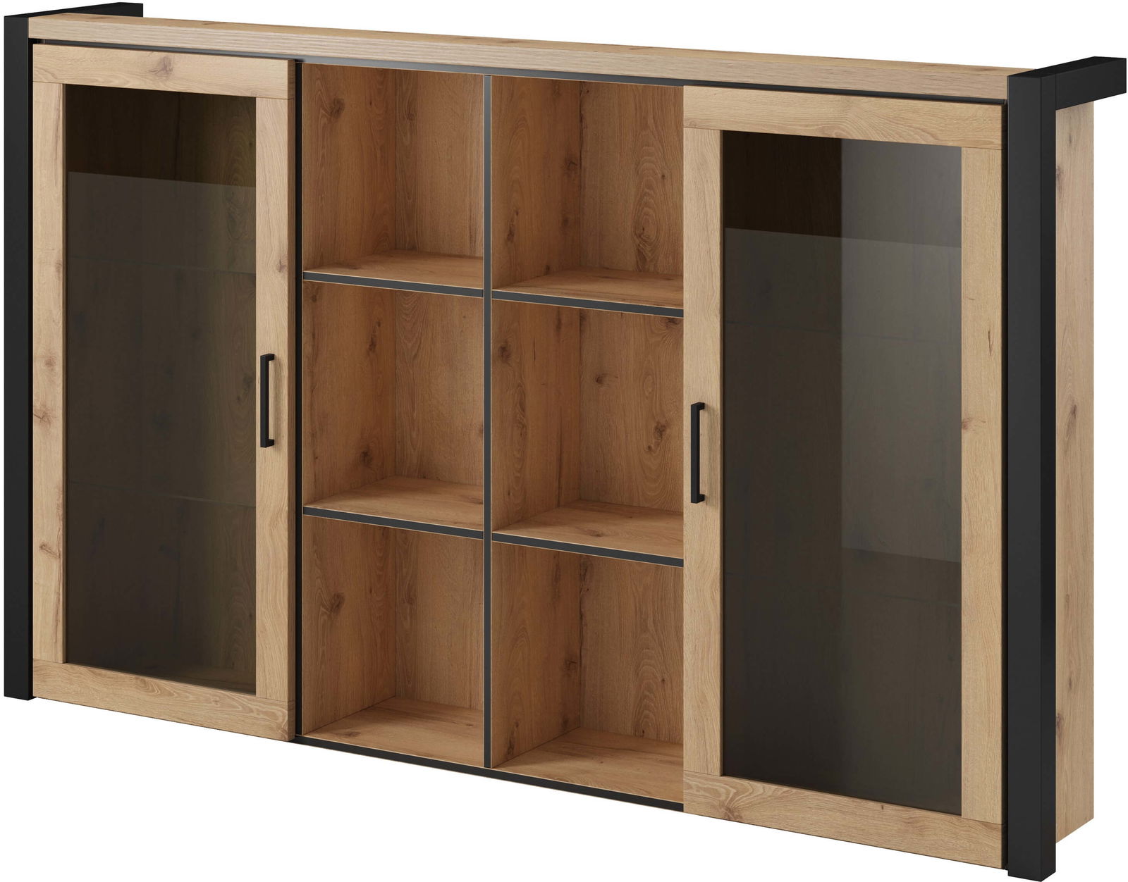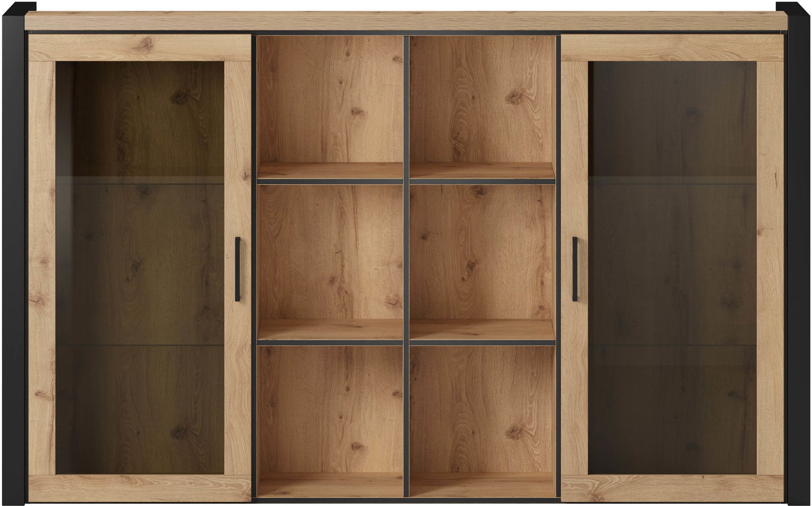 Βιτρίνα Amelie 2D σε μοντέρνο, industrial σχεδιασμό. Είναι σίγουρο πως θα ανανεώσετε τον χώρο σας, προσδίδοντας του μια κομψή νότα, χάρις τις μαύρες λεπτομέρειες και την γυάλινη πρόσοψη. Διαθέτει πρακτικές διαστάσεις και ευρύχωρο αποθηκευτικό χώρο που την καθιστούν ιδανική επιλογή για κάθε σαλόνι.