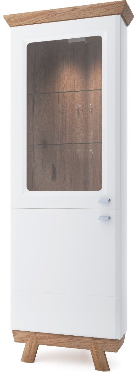 Προσθέστε μια κοψμή βιτρίνα στο καθιστικό ή την τραπεζαρία, για να δημιουργήσετε μια πολυτελή αίσθηση αλλά και να προσθέσετε επιπλέον αποθηκευτικές λύσεις! Η γωνιακή βιτρίνα της σειράς Aspen διαθέτει πρακτικούς χώρους και χάρη στους γήινους τόνους φυσικού ξύλου με γυαλιστερή πρόσοψη, θα ταιριάξει τέλεια σε όλα τα στυλ διακόσμησης.