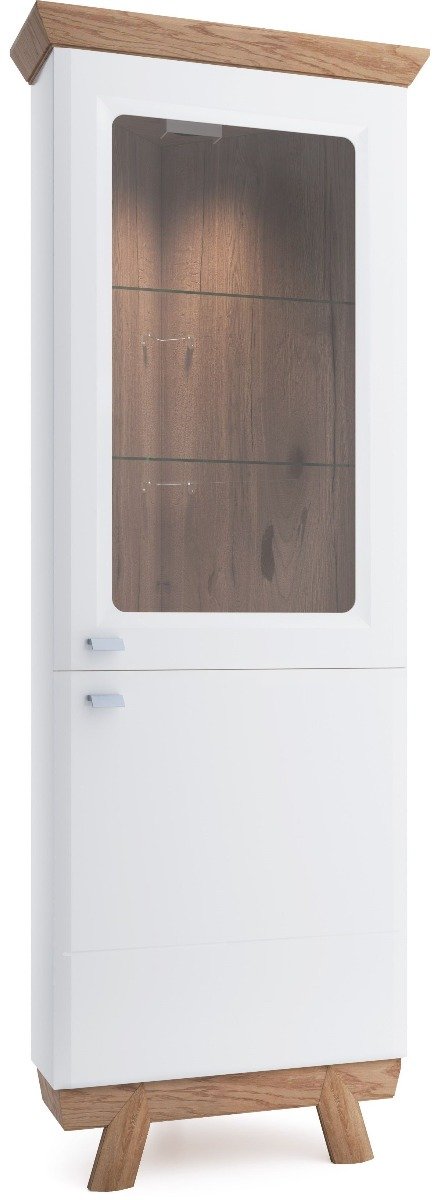 Προσθέστε μια κοψμή βιτρίνα στο καθιστικό ή την τραπεζαρία, για να δημιουργήσετε μια πολυτελή αίσθηση αλλά και να προσθέσετε επιπλέον αποθηκευτικές λύσεις! Η γωνιακή βιτρίνα της σειράς Aspen διαθέτει πρακτικούς χώρους και χάρη στους γήινους τόνους φυσικού ξύλου με γυαλιστερή πρόσοψη, θα ταιριάξει τέλεια σε όλα τα στυλ διακόσμησης.