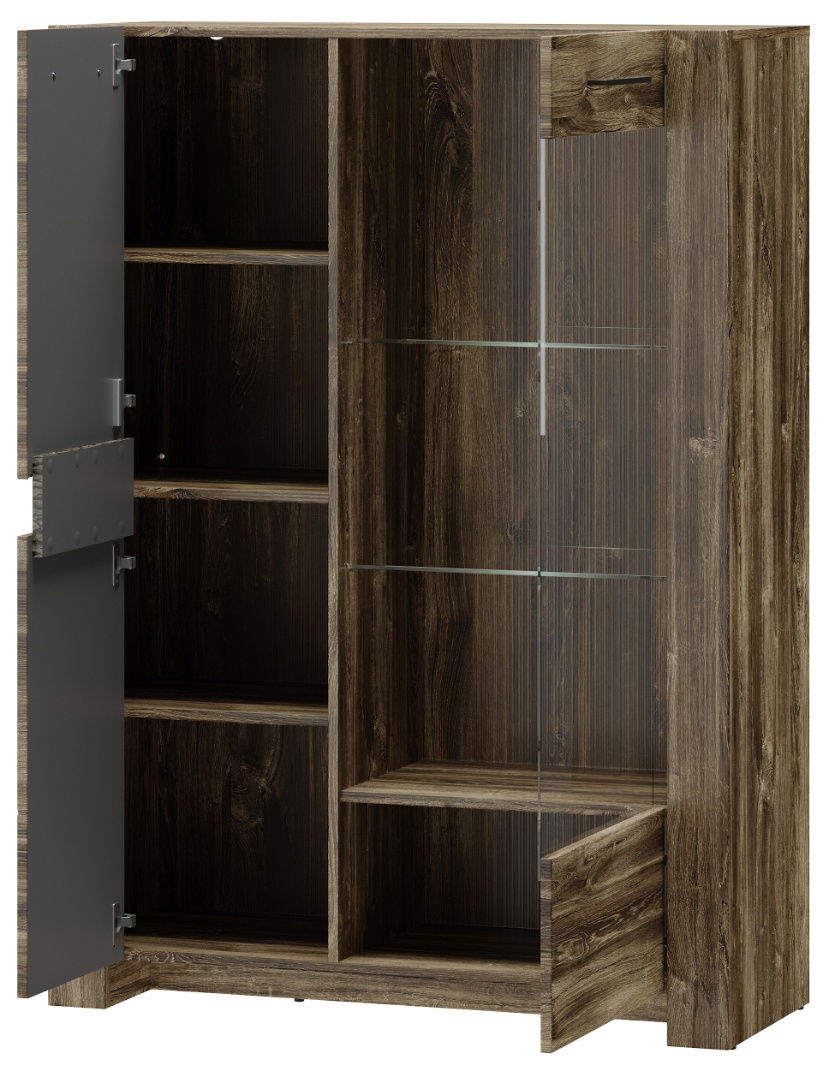 Η χαμηλή βιτρίνα της σειράς Belarus αποτελεί την ιδανική επιλογή, για τους λάτρεις του κλασικού στυλ και του rustic interior design. Χάρη στο φινίρισμα με όψη παλαιωμένου ξύλου και το διακριτικό κρυφό φωτισμό, το έπιπλο αποκτά μοναδικό χαρακτήρα, ιδιαίτερα σε συνθήκες χαμηλού φωτισμού. Οι πρακτικές διαστάσεις της βιτρίνας, της επιτρέπουν να χρησιμοποιηθεί ως βιτρίνα, μπουφές ή έπιπλο μπαρ!