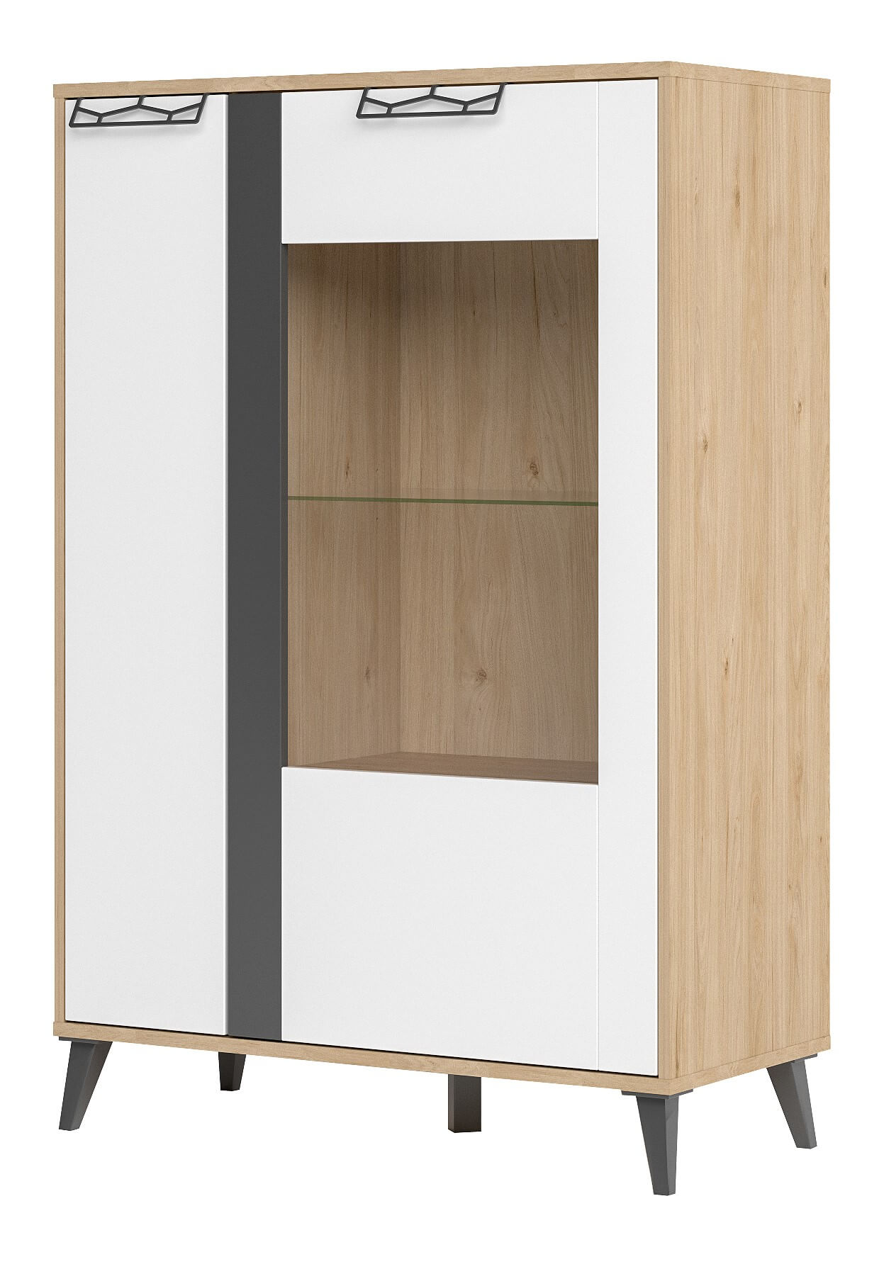 Βιτρίνα χαμηλή Janet κομψού και μοντέρνου σχεδιασμού που συνδυάζεται ιδανικά με τα έπιπλα της σειράς και ολοκληρώνει την σύνθεση. Ο εξαιρετικά πρακτικός σχεδιασμός της, προσφέρει τον απαραίτητο αποθηκευτικό χώρο καλύπτοντας όλες τις καθημερινές σας ανάγκες χάρη στα δύο ντουλάπια με τα εσωτερικά ράφια.