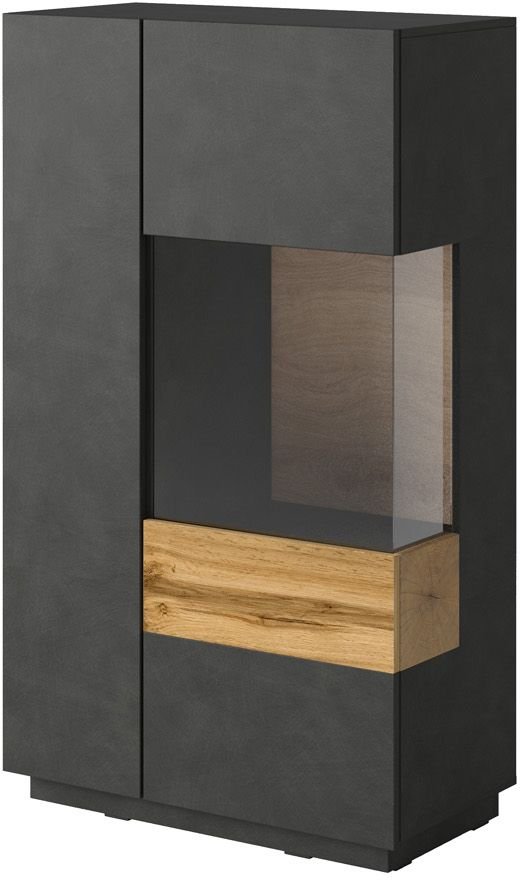 Η χαμηλή βιτρίνα Selki αποτελεί ένα ιδιαίτερης αισθητικής κομμάτι, σχεδιασμένο σε λιτές γραμμές με έμφαση στη λειτουργικότητα και την πρακτικότητα. Διαθέτει μεγάλη πόρτα στην πρόσοψη με τμήμα από διαφανές γυαλί, για να τοποθετήσετε τα διακοσμητικά ή υαλικά σας που θέλετε να αναδείξετε. Επιπλέον διαθέτει μια πόρτα με δύο μεγάλα ράφια στο εσωτερικό.