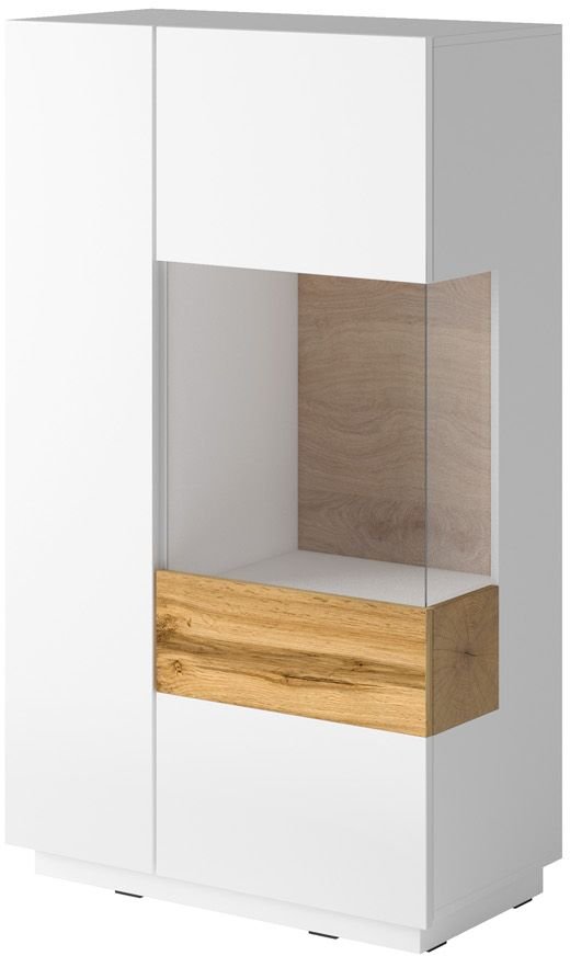Η χαμηλή βιτρίνα Selki αποτελεί ένα ιδιαίτερης αισθητικής κομμάτι, σχεδιασμένο σε λιτές γραμμές με έμφαση στη λειτουργικότητα και την πρακτικότητα. Διαθέτει μεγάλη πόρτα στην πρόσοψη με τμήμα από διαφανές γυαλί, για να τοποθετήσετε τα διακοσμητικά ή υαλικά σας που θέλετε να αναδείξετε. Επιπλέον διαθέτει μια πόρτα με δύο μεγάλα ράφια στο εσωτερικό.